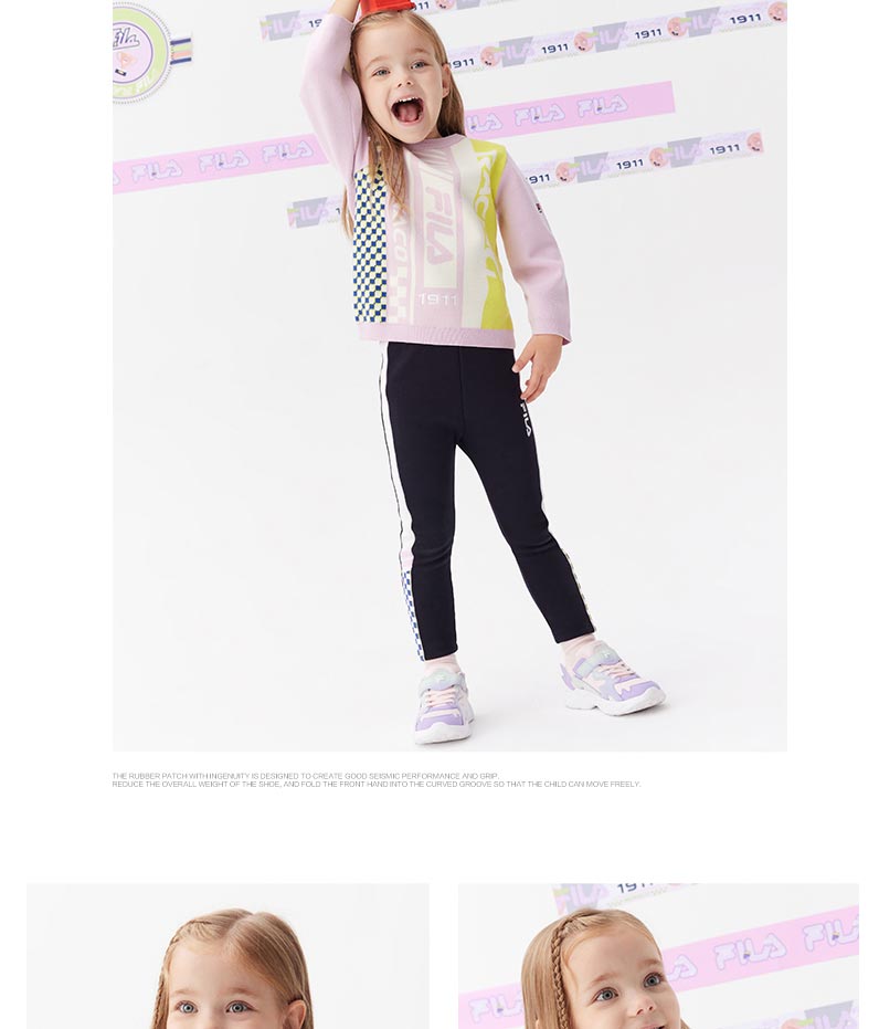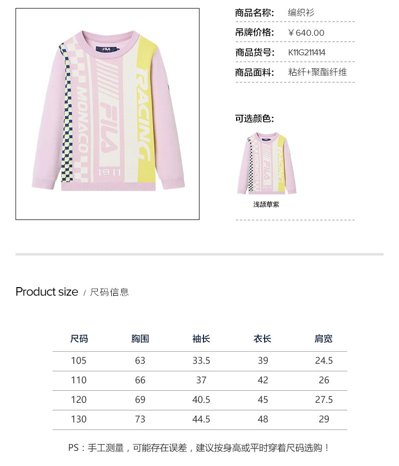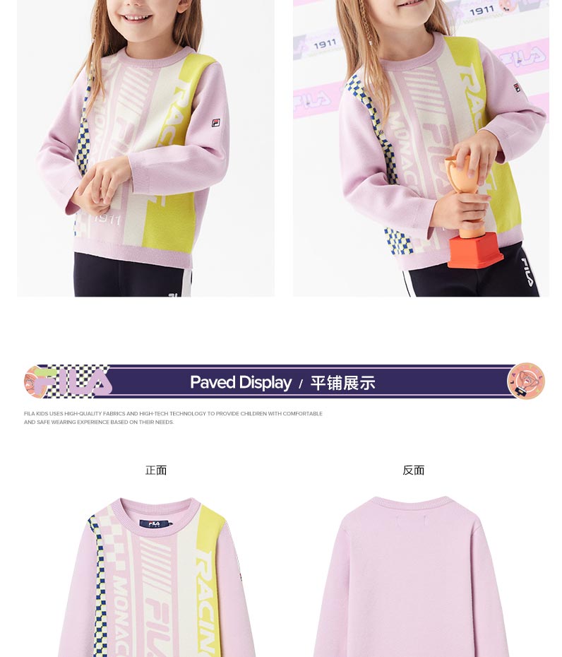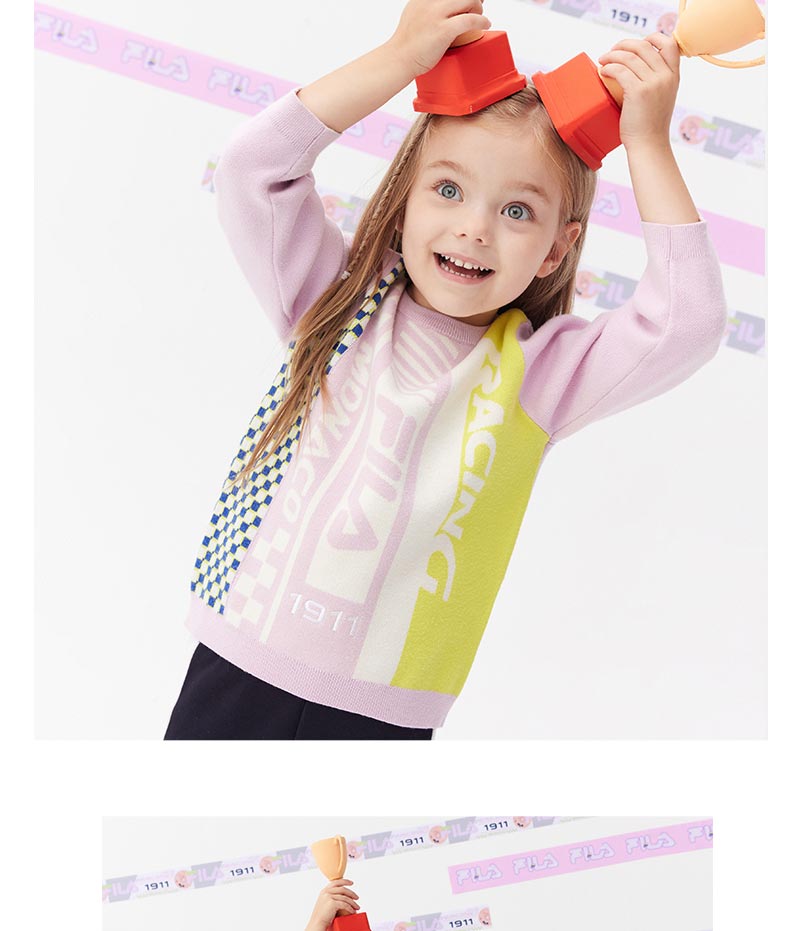 小斐乐儿童毛衣2022春季新款潮撞色女小童宝宝圆领套头针织衫K11G211414