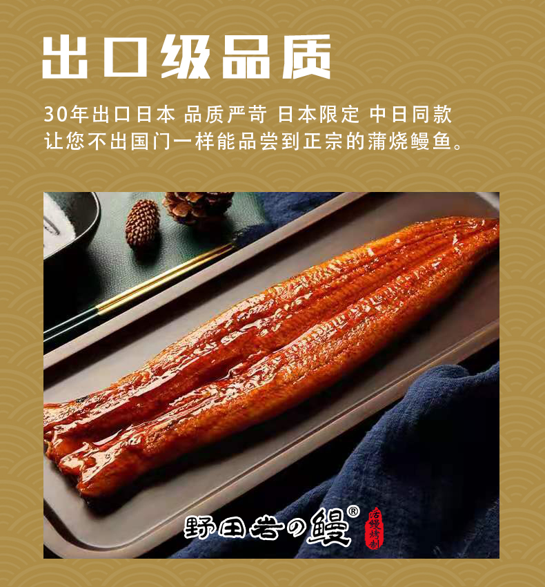 野田岩的鳗秉持着“让您不出国门一样能品尝到日本同等品质烤鳗”的经营理念,坚持选用黄金比例每条330g左右大小的活鳗制作每一条“日式蒲烧鳗鱼”,严格依照日式蒲烧口感出品,满足大家对美食的期待。