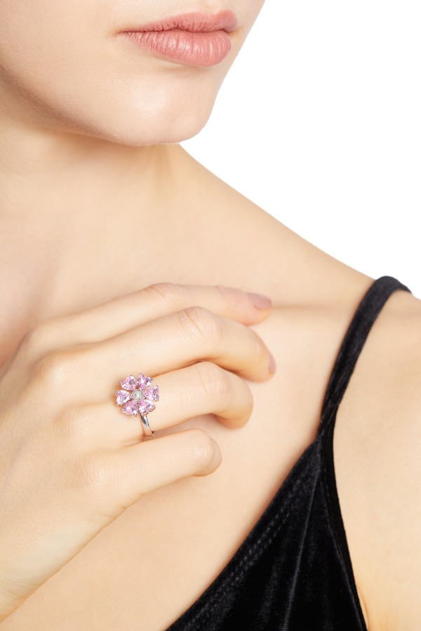 HAYES 粉色花朵水晶戒指 5401