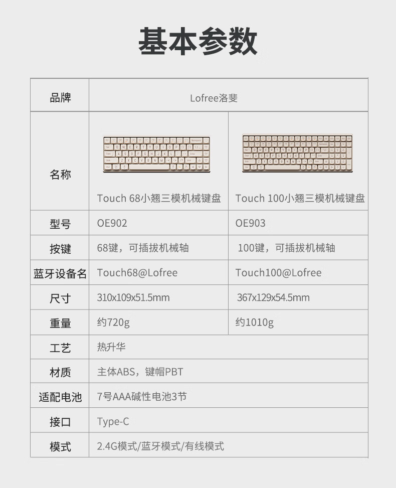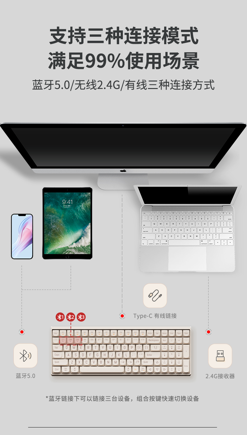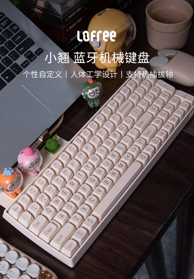 洛斐(LOFREE)小翘三模无线蓝牙机械键盘办公无线热拔插多系统兼容连接 豆腐小翘100键键盘
