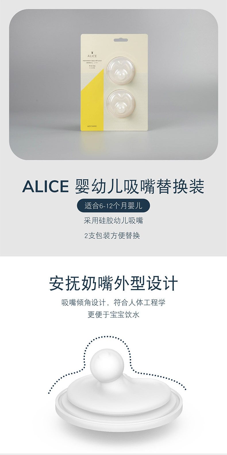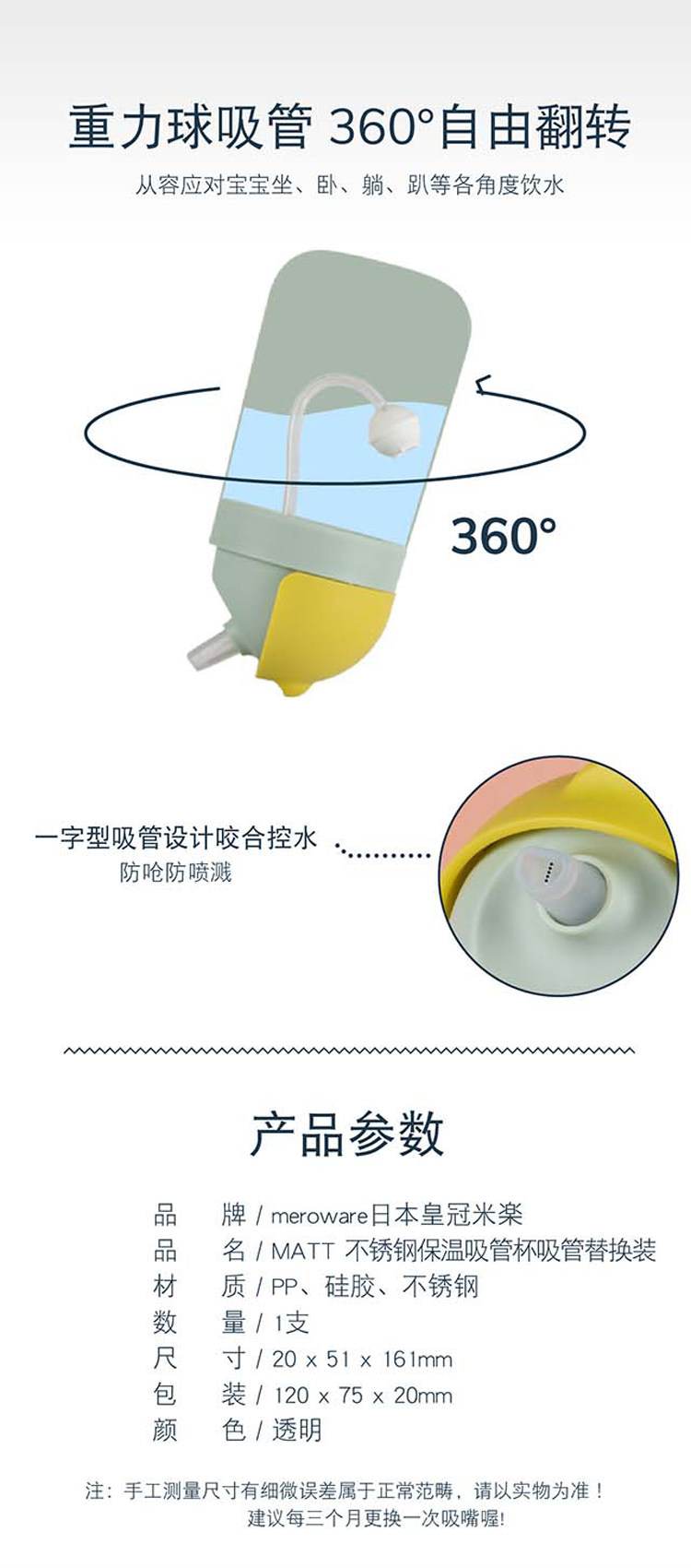 日本meroware皇冠米楽 ALICE 婴幼儿水杯替换装奶嘴吸管直饮口
