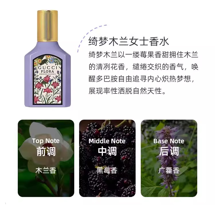 【保税仓】Gucci 古驰 香水三件套(绮梦栀子花浓香30ml+香草兰浓香30ml+绮梦木兰浓香30ml)