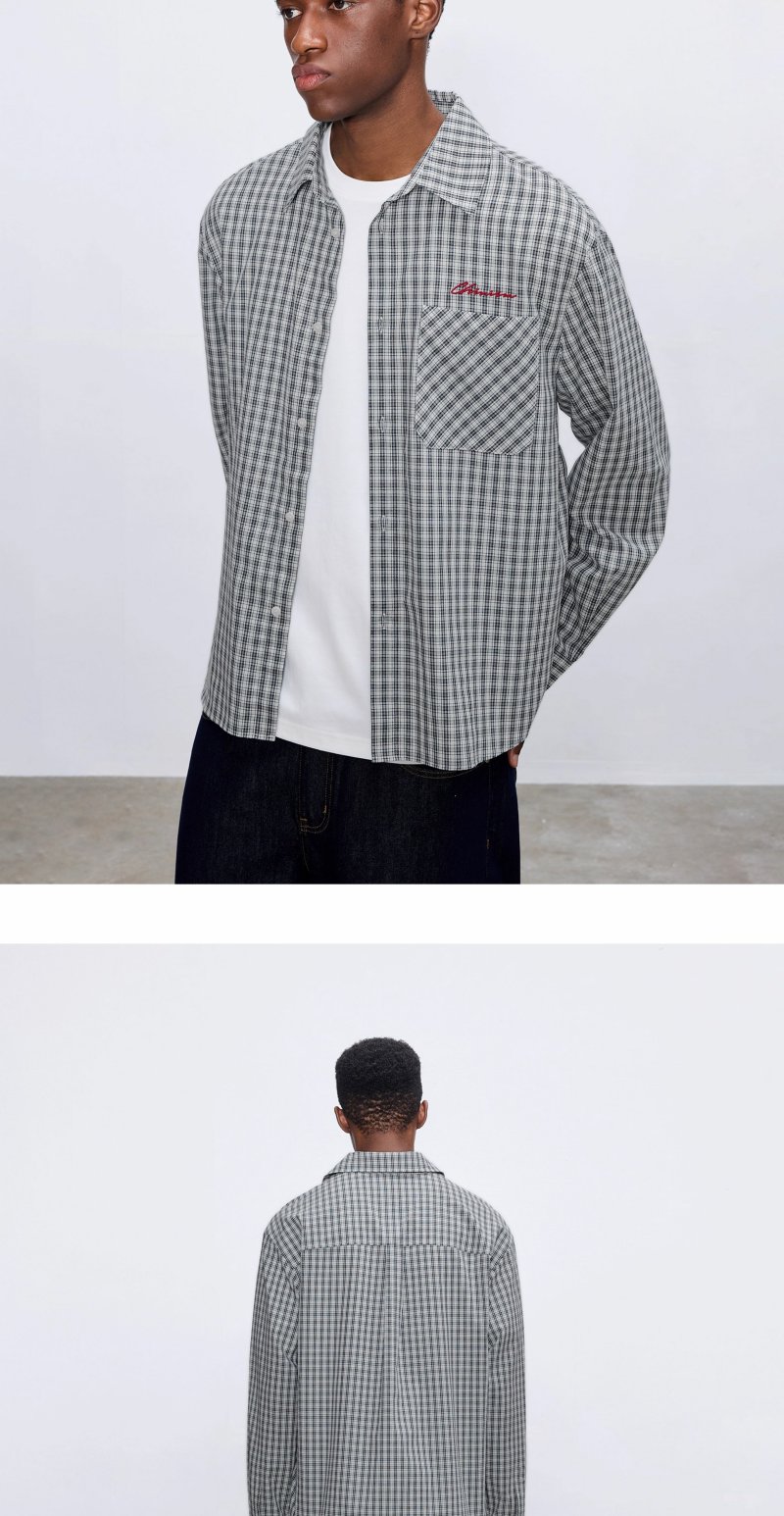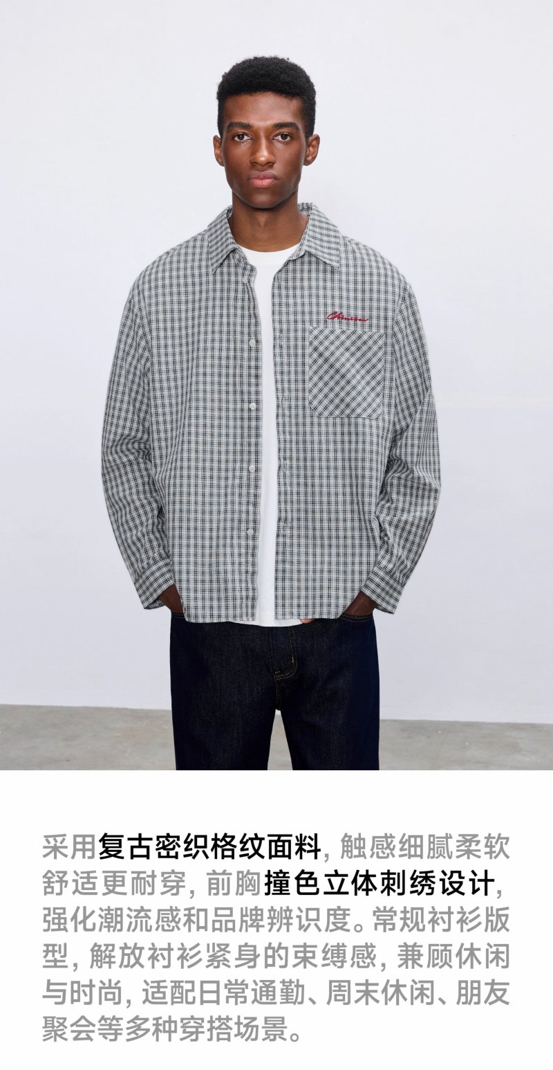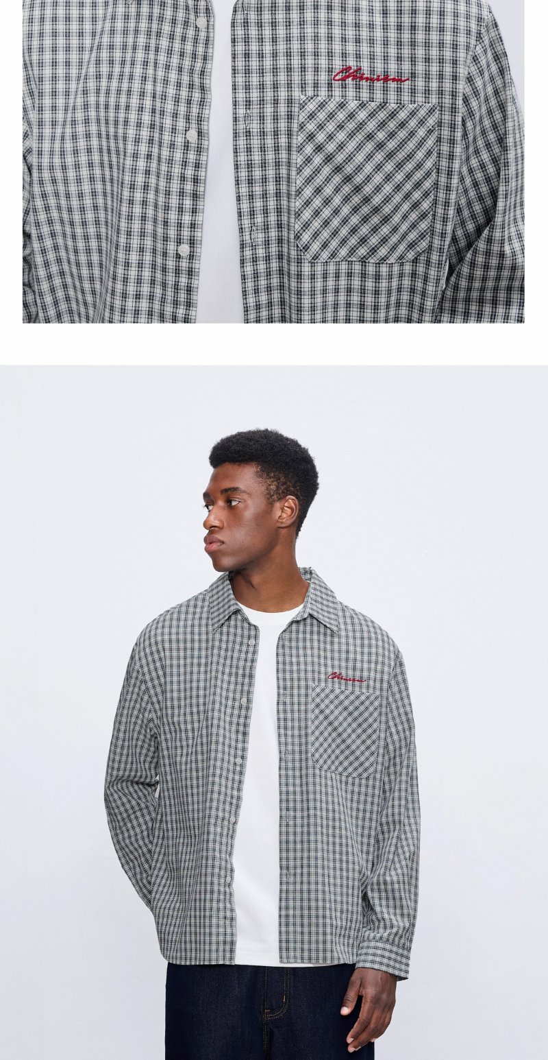 CHINISM赤尘 复古格子长袖衬衫男秋季新款翻领潮牌刺绣衬衣外套
