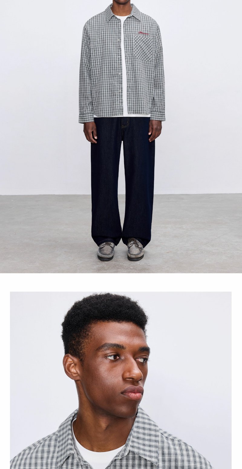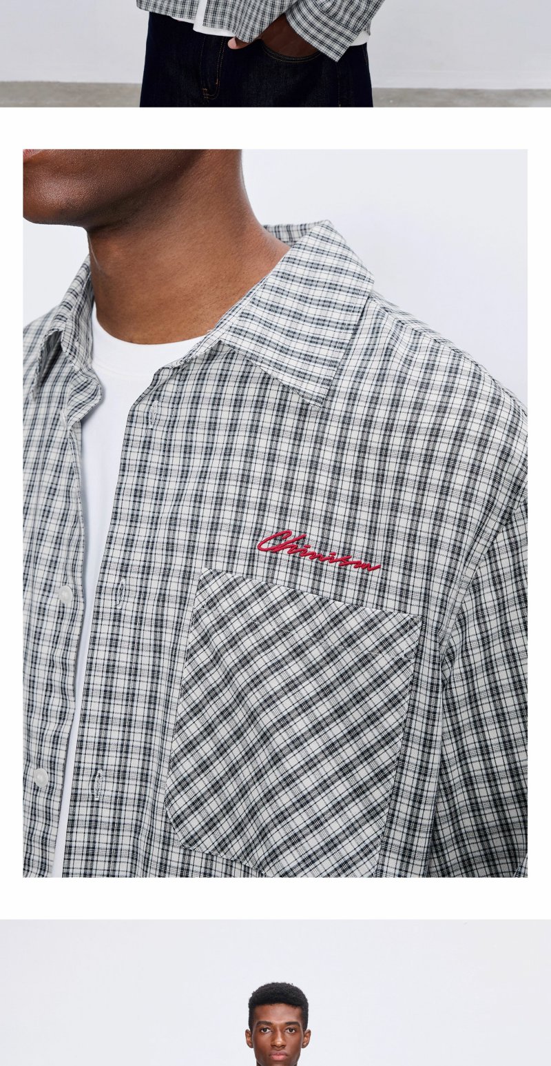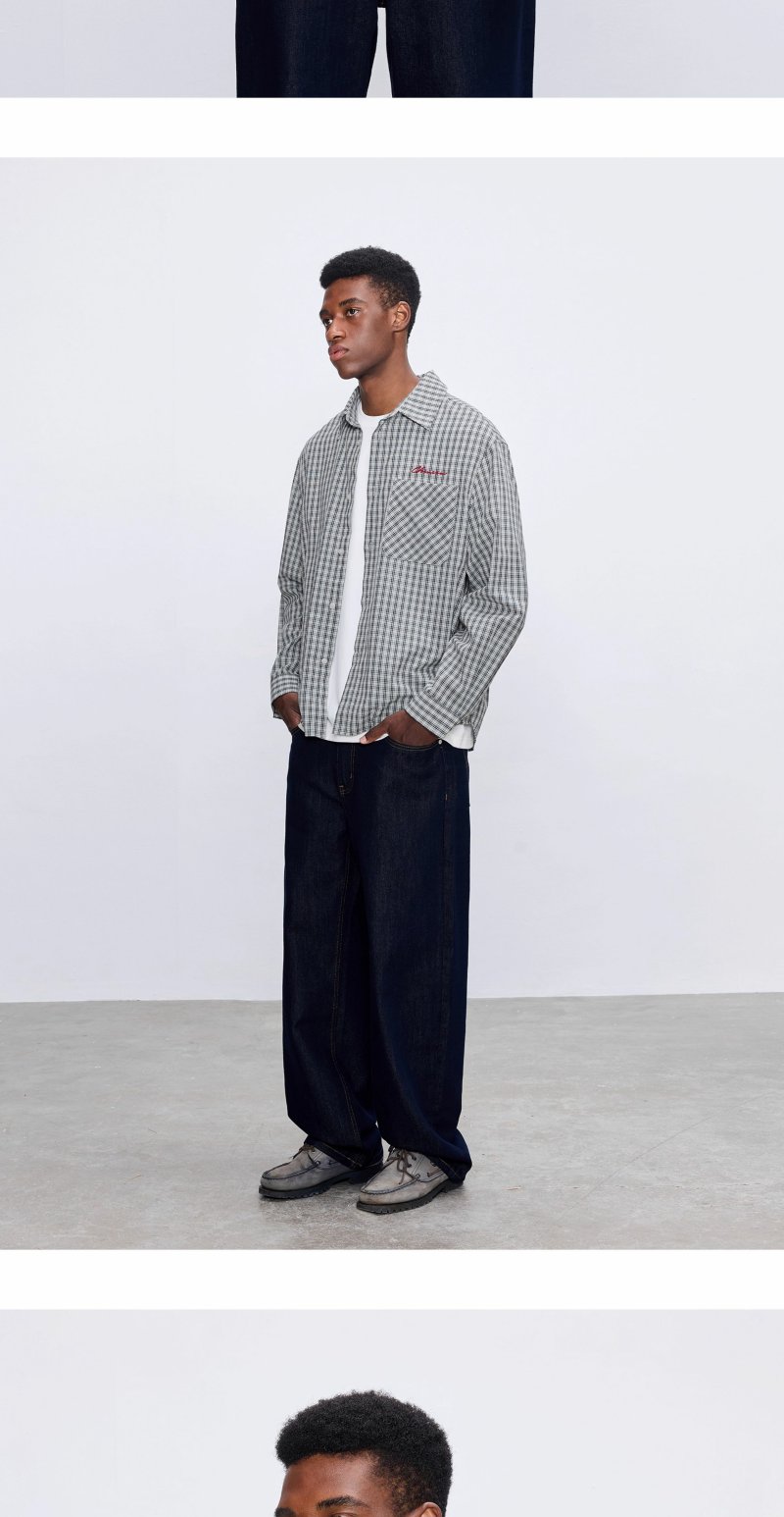 CHINISM赤尘 复古格子长袖衬衫男秋季新款翻领潮牌刺绣衬衣外套