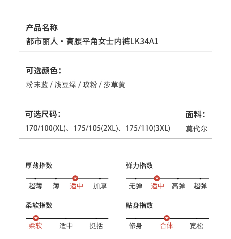 都市丽人健康系列莫代尔平角裤女士内裤高腰平角裤LK34A1