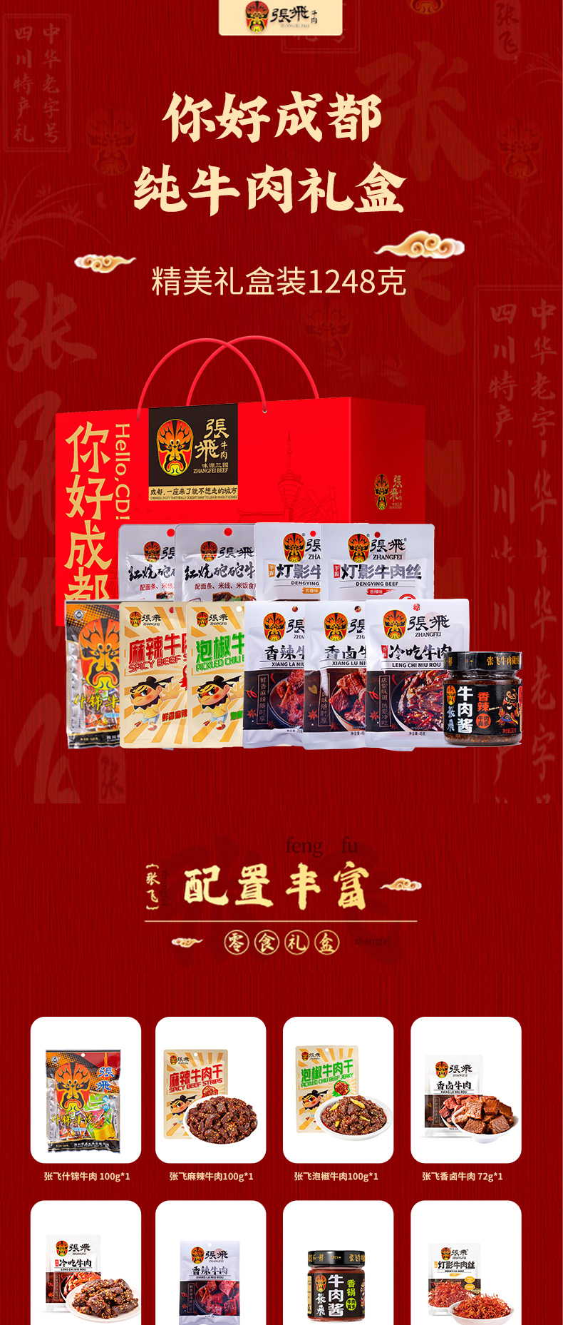 张飞 你好成都纯牛肉礼盒-1248g【年货】JCT