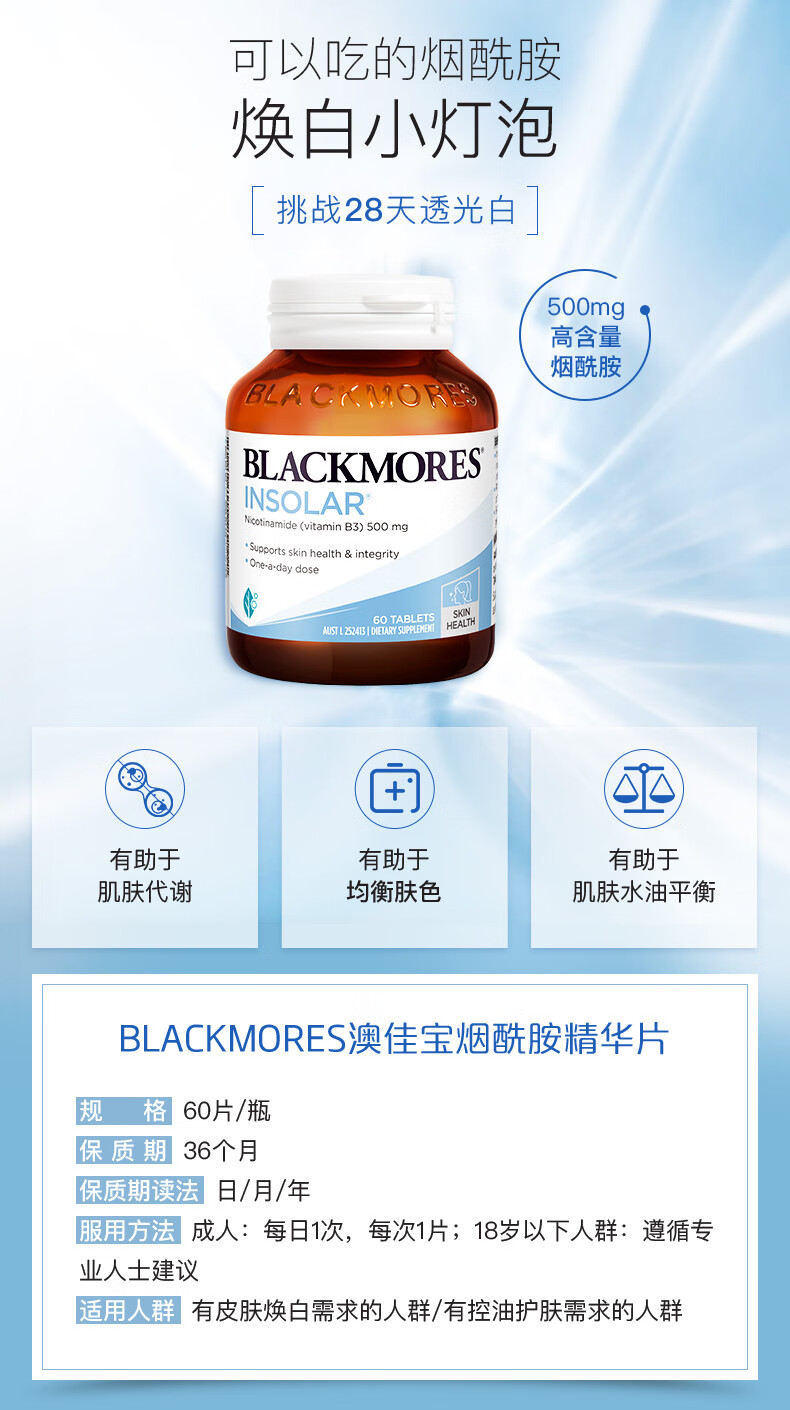 【保税仓】Blackmores澳佳宝烟酰胺焕白修护精华片 60粒
