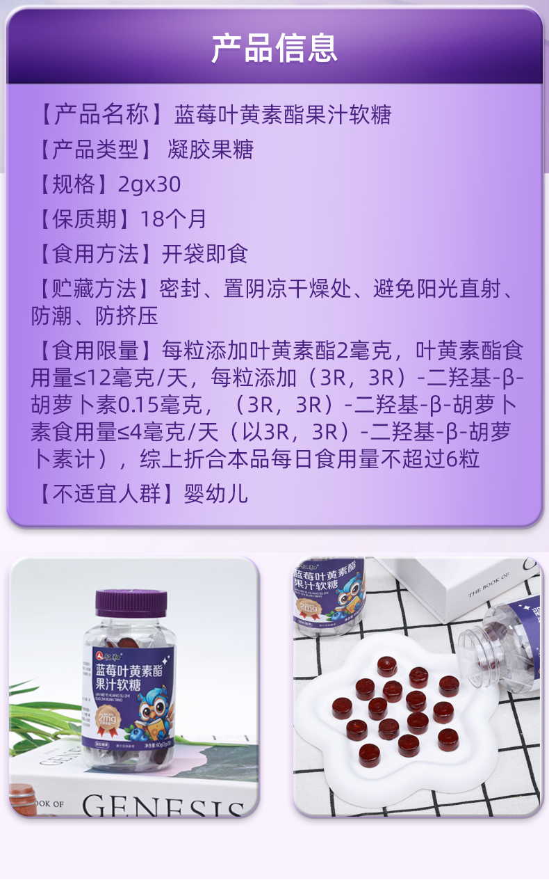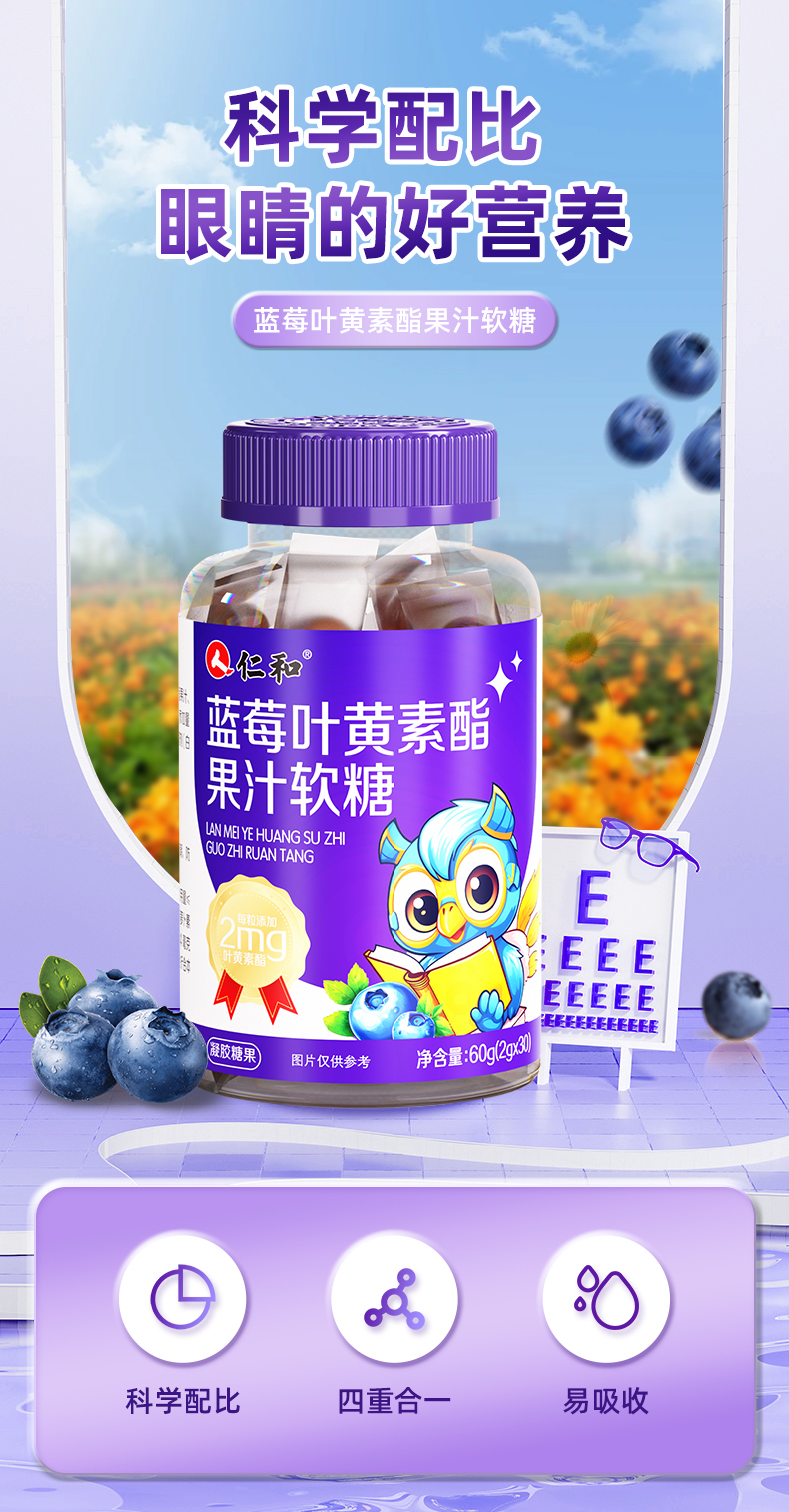 仁和蓝莓叶黄素酯果汁软糖2.0g/粒*30粒