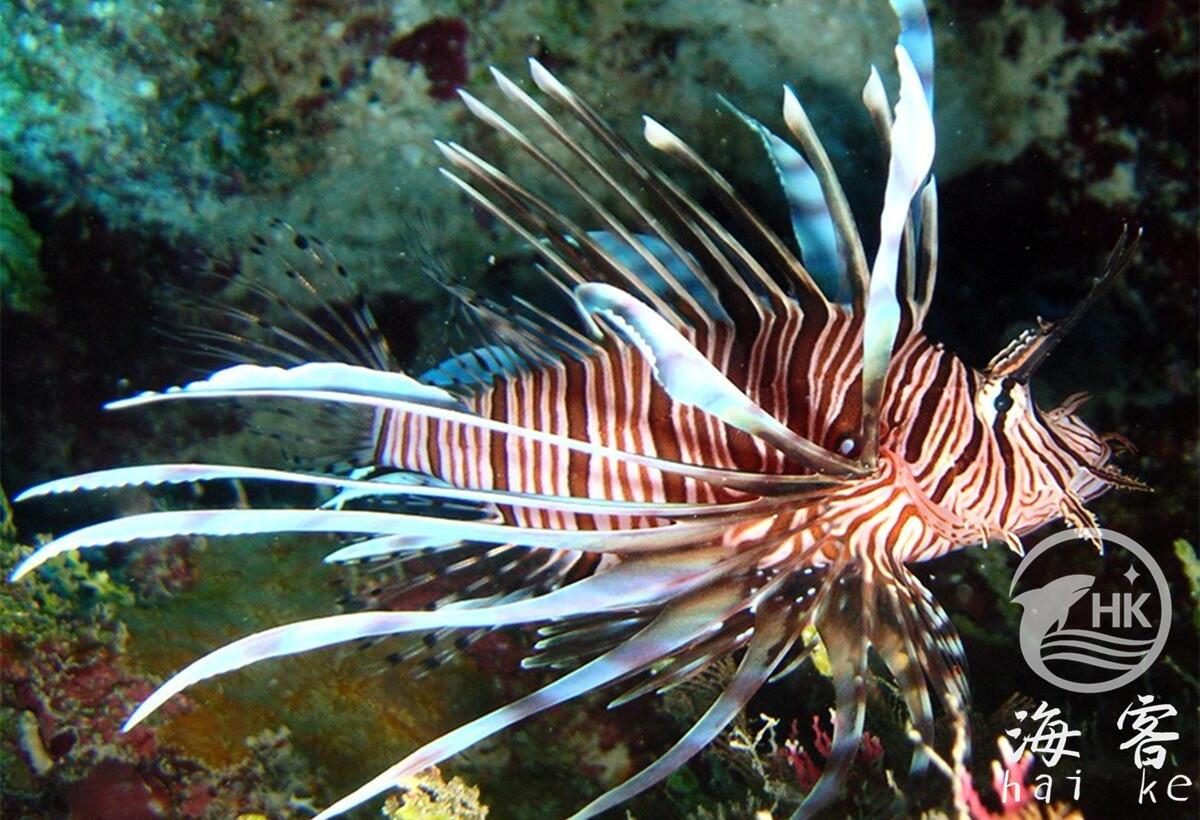 也叫普通狮子鱼、魔鬼蓑、狮子鱼、长狮、魔鬼、国公、石狗敢等等。身体颜色为淡红褐色带,白色及黑色的条纹垂直分布全身。它有一个很大,扇形的胸鳍;高高的,条纹的背鳍,很像印第安人的披挂。
