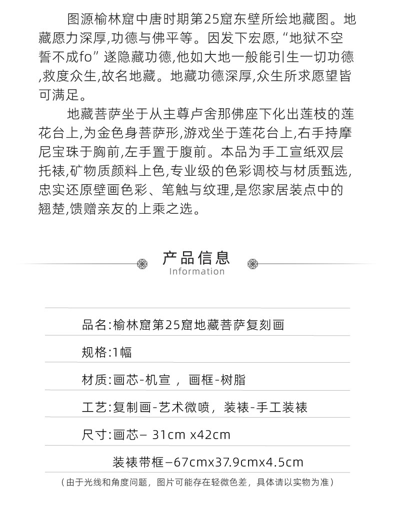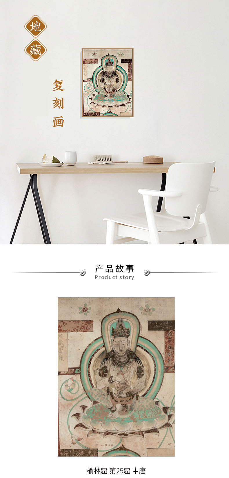 敦煌研究院【榆林窟地藏菩萨装饰画复制画】博物馆文创礼品 装饰摆件