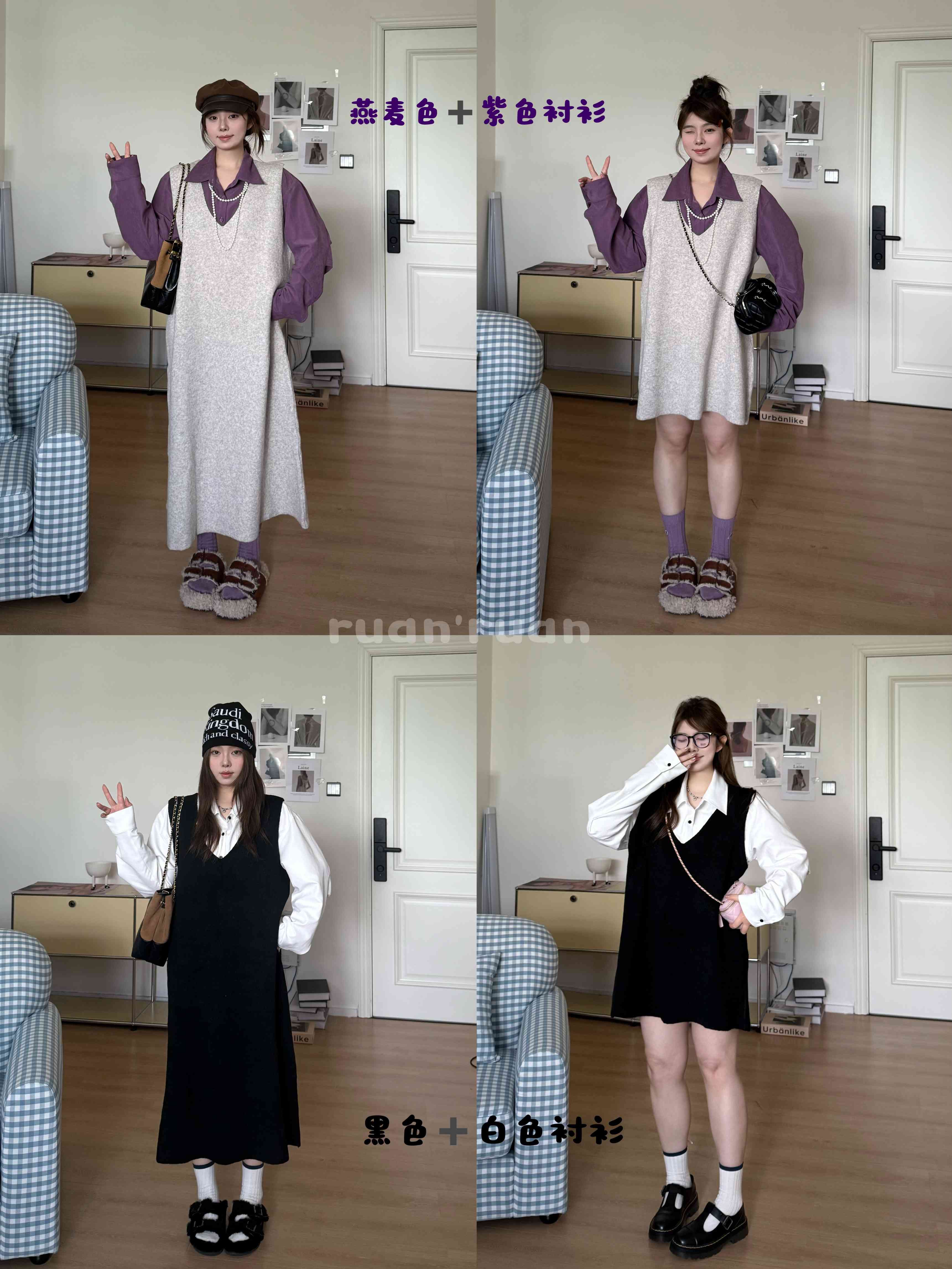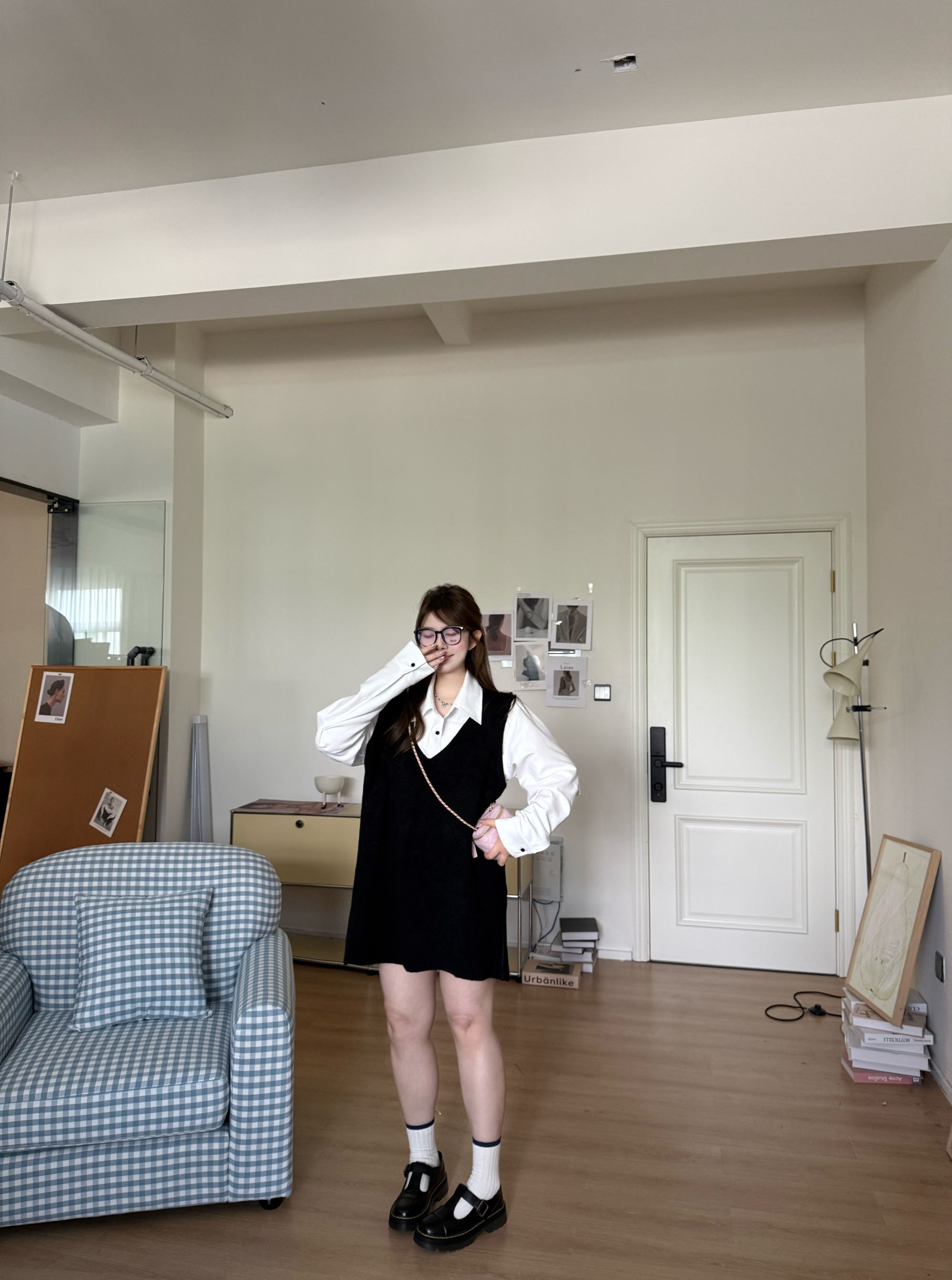 25AW上新【现货折上95折】 软软同款【胶片定格】慵懒风韩版时尚设计感绒感宽松衬衫+马甲裙