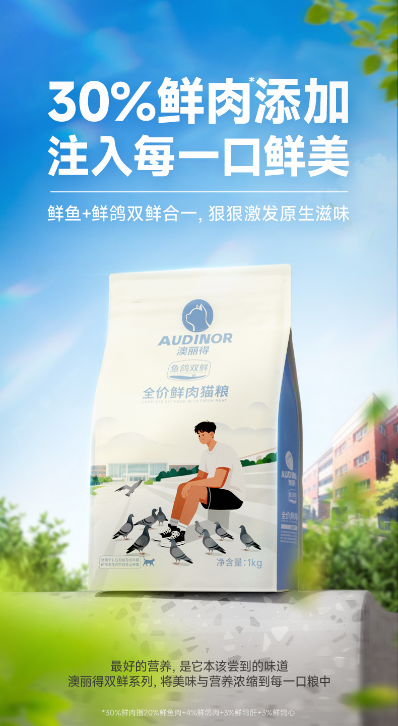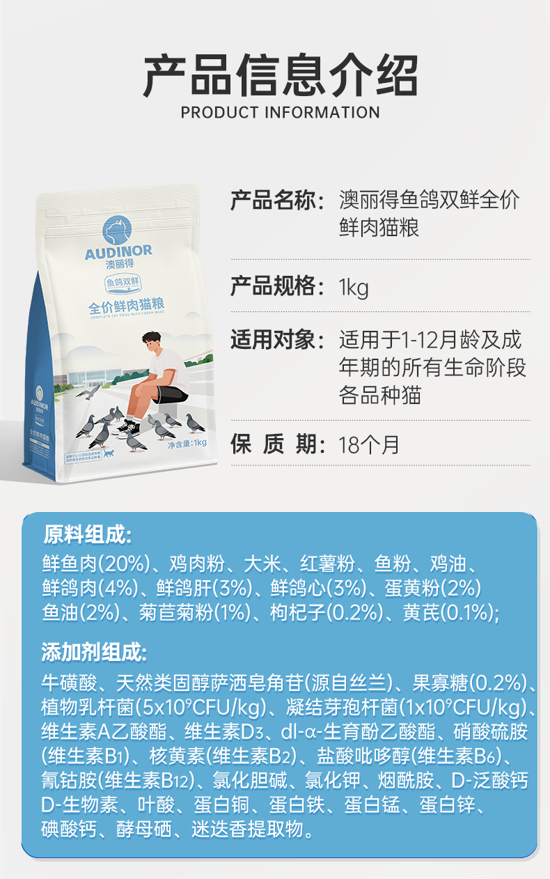 雷米高澳丽得双鲜猫粮鲜肉鱼鸽肉全价全阶段成幼猫营养易消化美毛