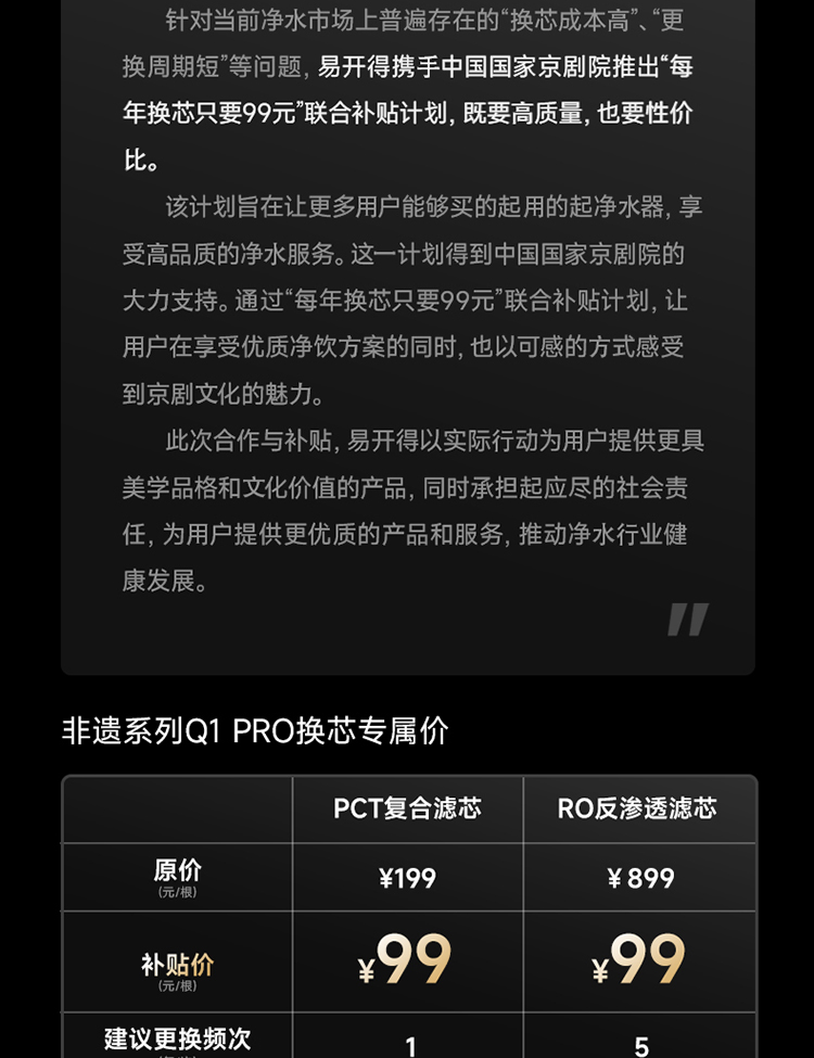 易开得非遗系列京剧联名款全新升级Q1PRO反渗透净水器900G大通量纯水机