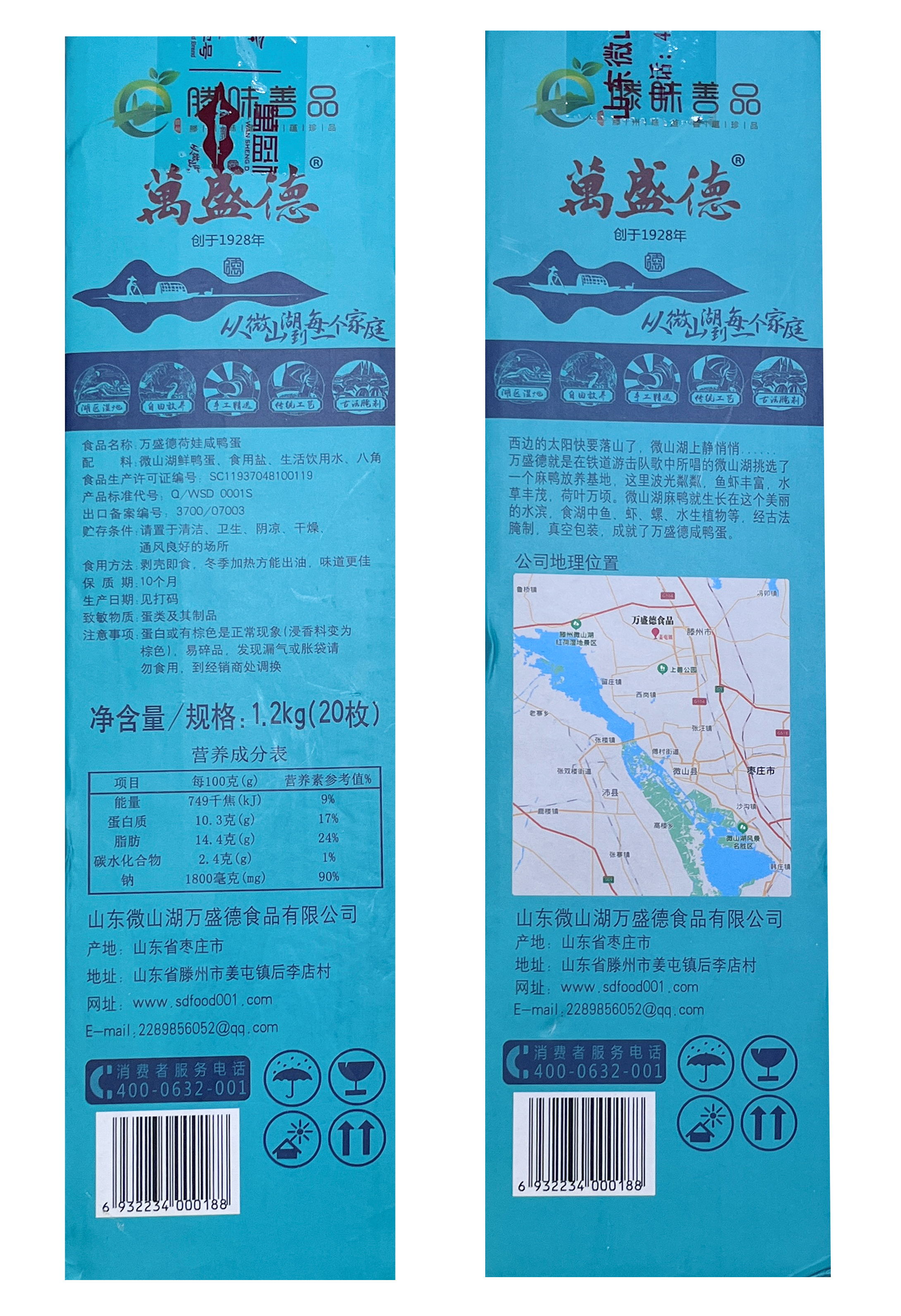 优选丨【出口级非物质文化遗产 】山东老zi号 微山湖区万盛德咸鸭蛋60g*20枚礼盒装 生态养殖鲜鸭蛋古法红泥低盐腌制 沙心咸鸭蛋