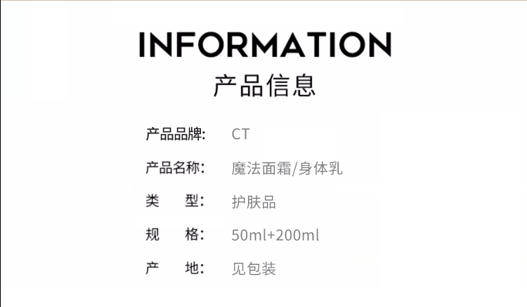 CT 魔法面霜50ml+身体乳200ml 【2026.11】