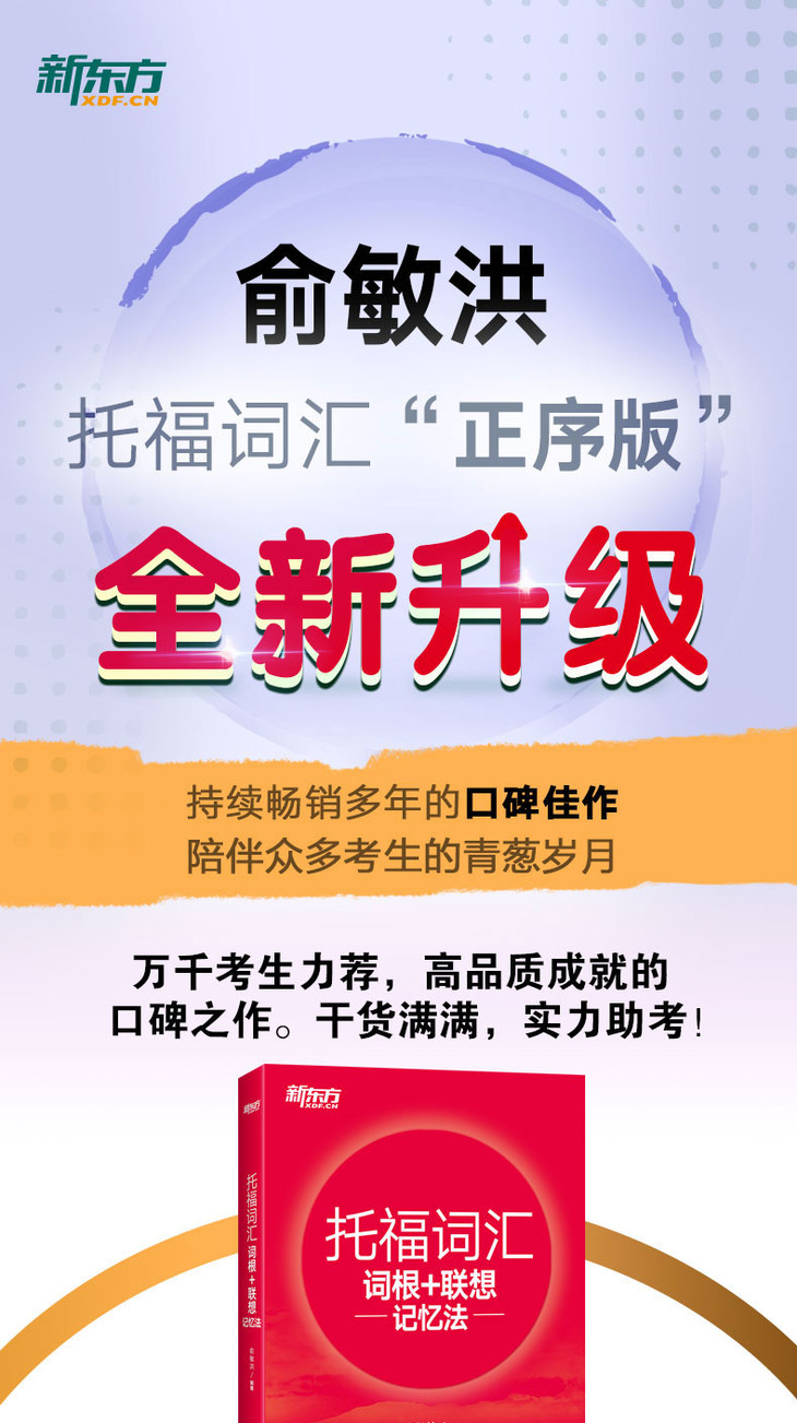 “词根+联想”系列词汇书是俞敏洪老师的经典之作,该系列中的“托福词汇”一直深受读者喜爱,陪伴众多考生度过备考托福的青葱岁月。