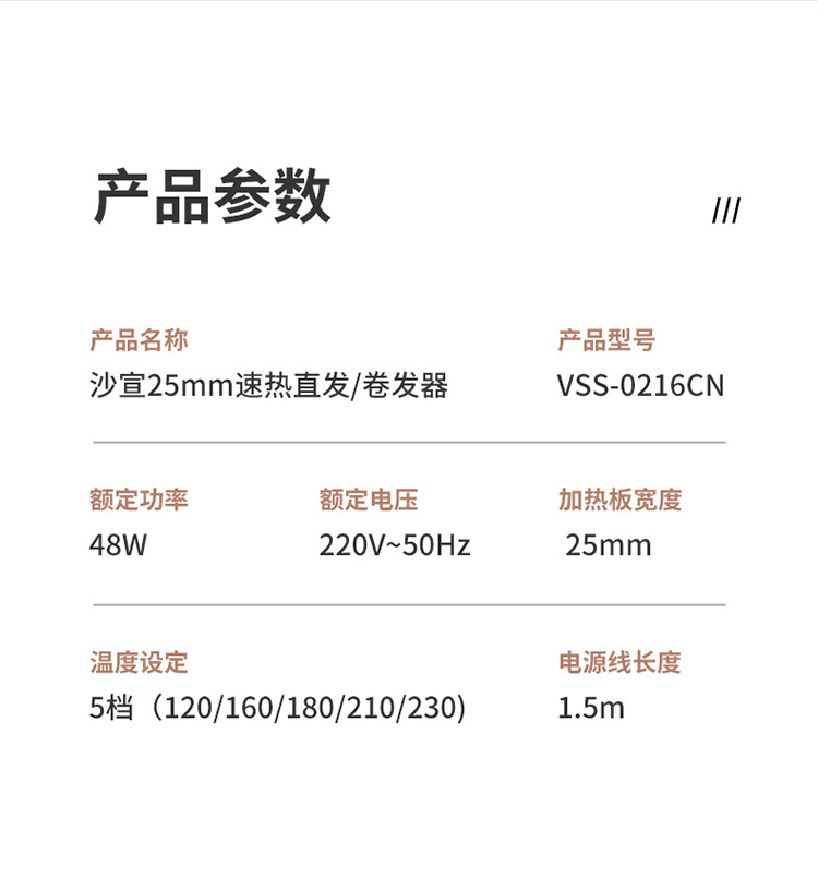 沙宣(VS) 电卷发棒夹板拉直板夹 VSS-0216CN