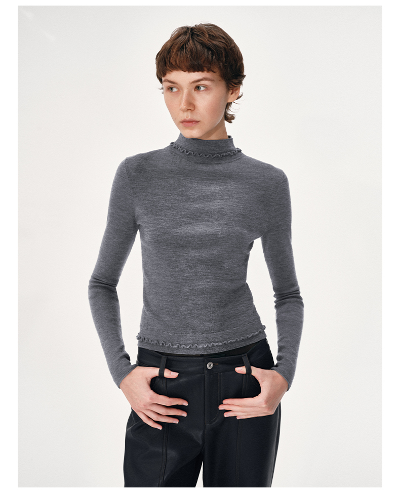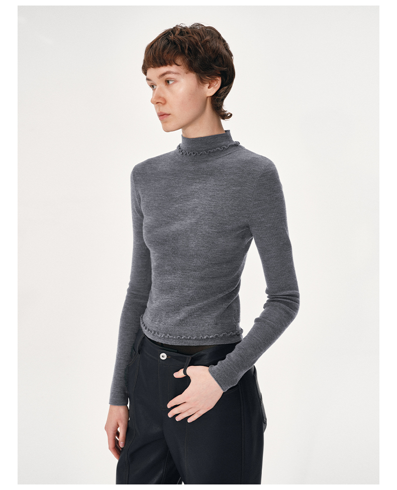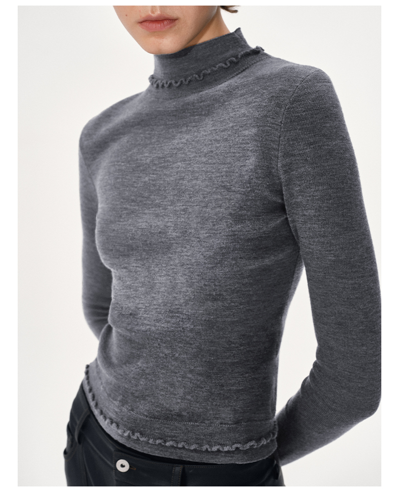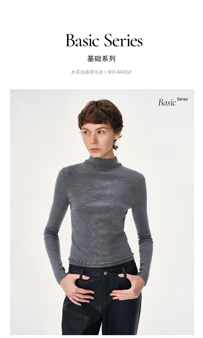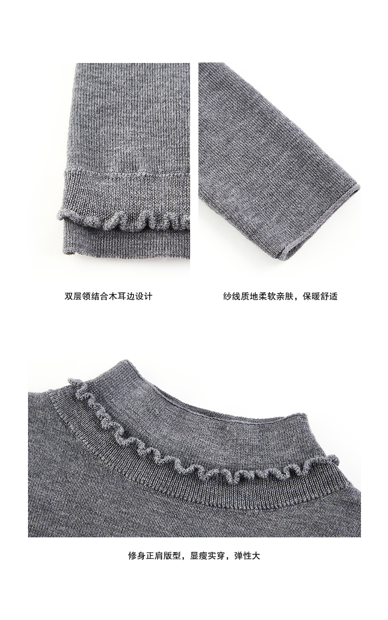 NUTH 100%绵羊毛高领修身正肩打底针织衫女