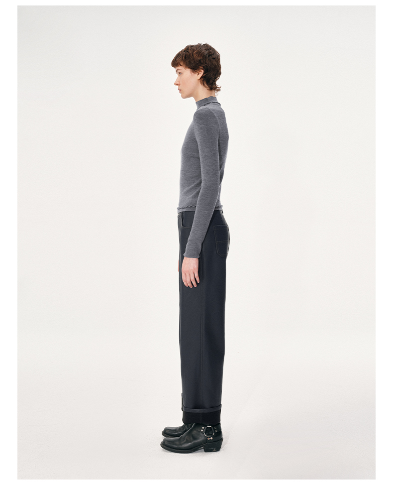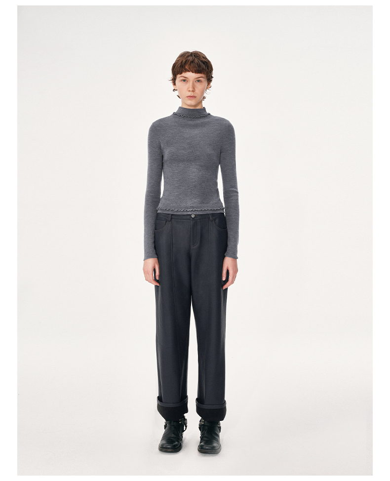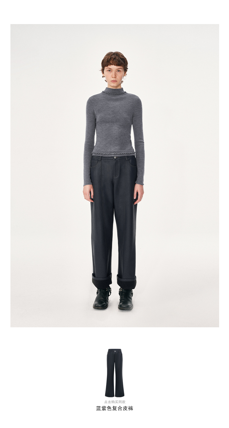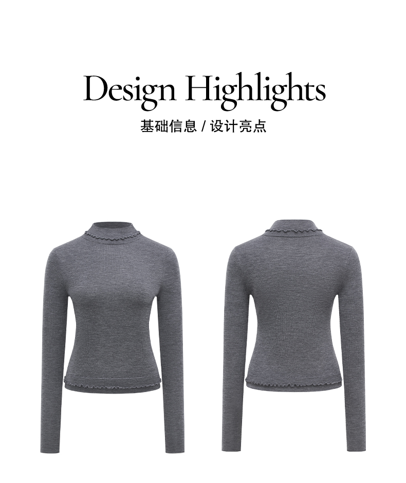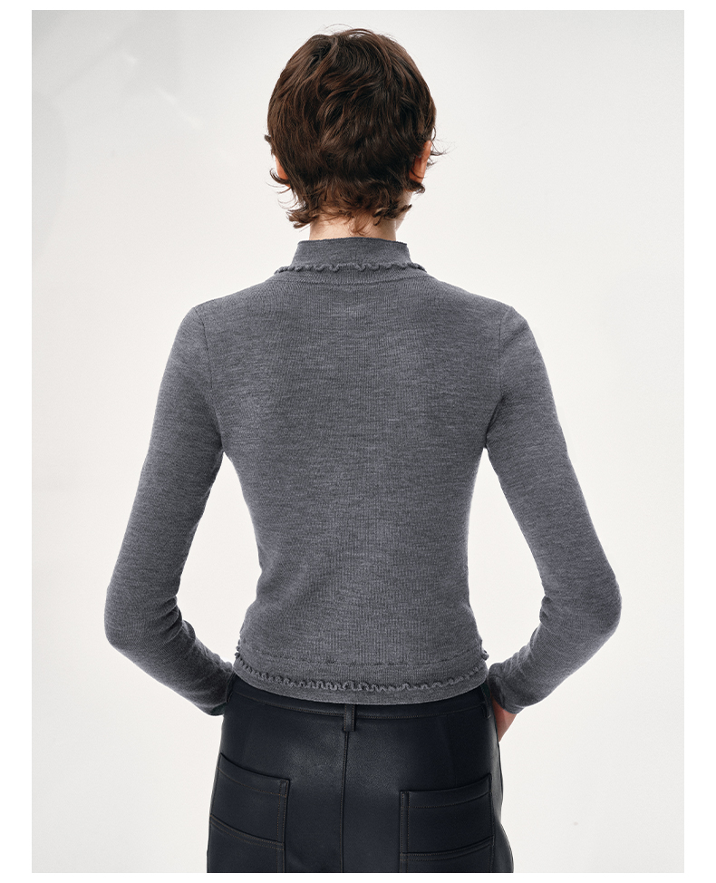 NUTH 100%绵羊毛高领修身正肩打底针织衫女