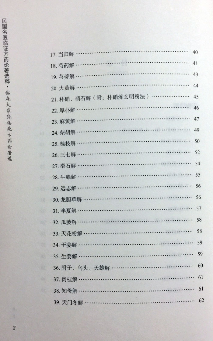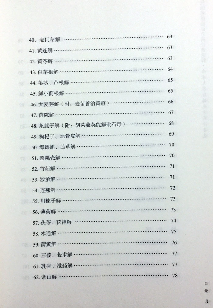 药物部分精选了79味常用药物,从性味归经、煎服方法、配伍化裁到诸家论述等方面进行介绍。张氏以《神农本草经》为宗,旁参他家本草论著,并结合实践,去伪存真。对所载药物,多附录临证验案进行阐发,论证结合,相得益彰。