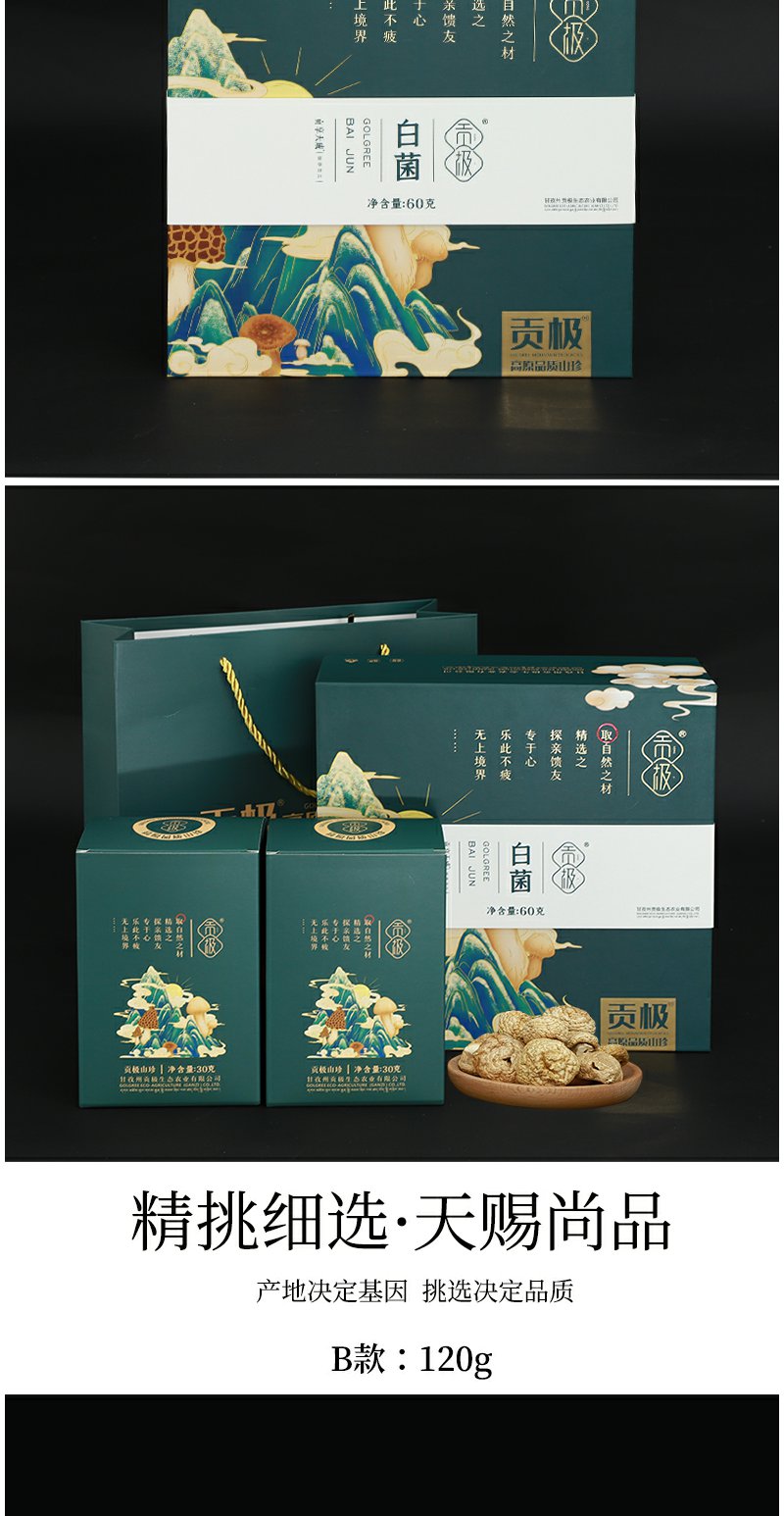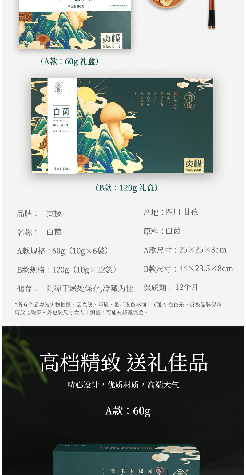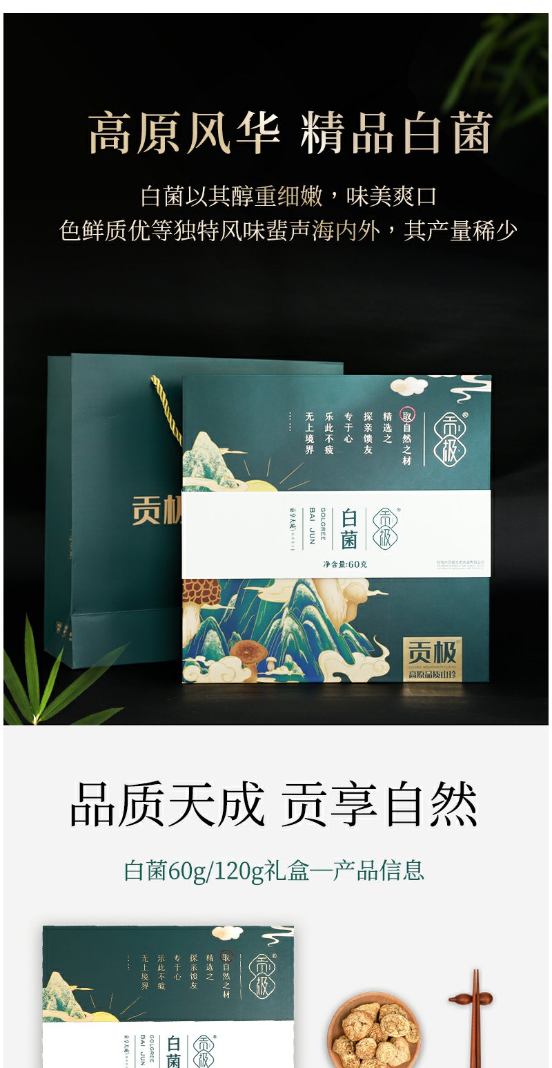 贡极 白菌干货礼盒 四川甘孜特产山珍菌菇 白菌礼盒