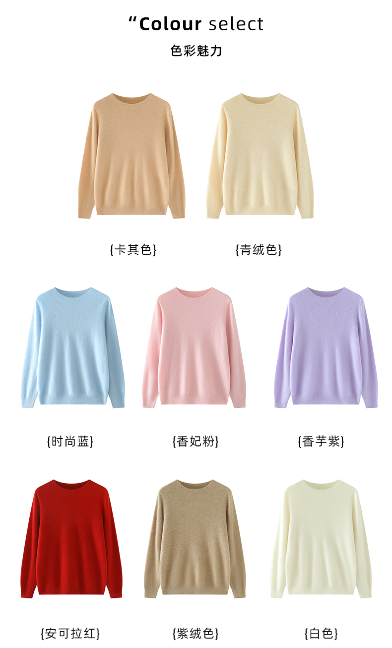 【清河羊毛羊绒专场】鹿展515 女款圆领羊绒衫 100%山羊绒