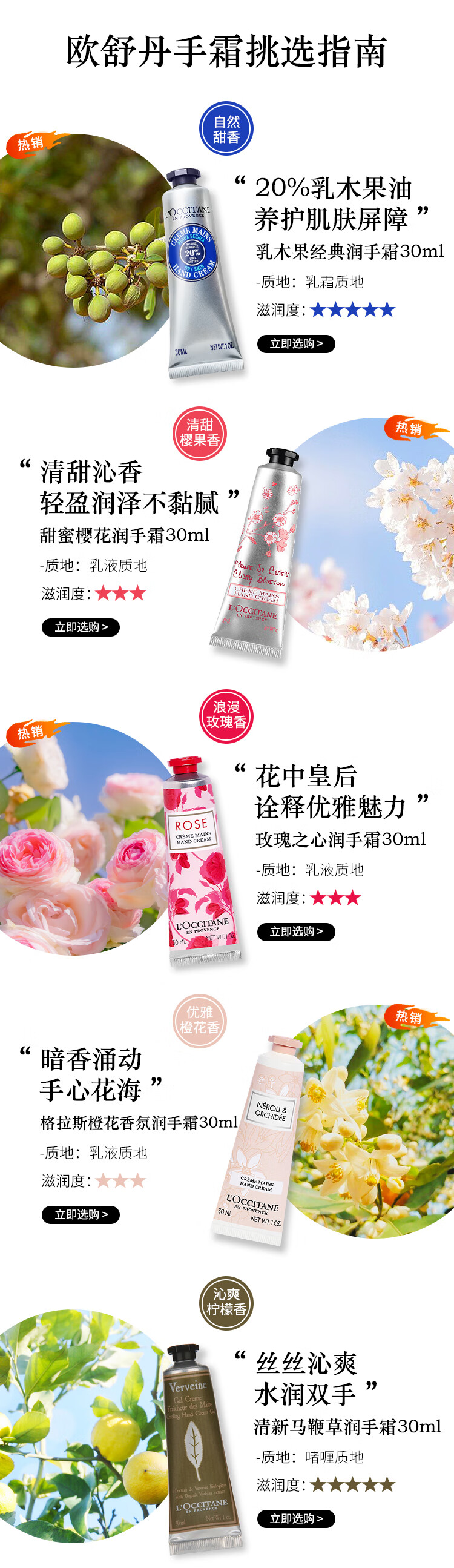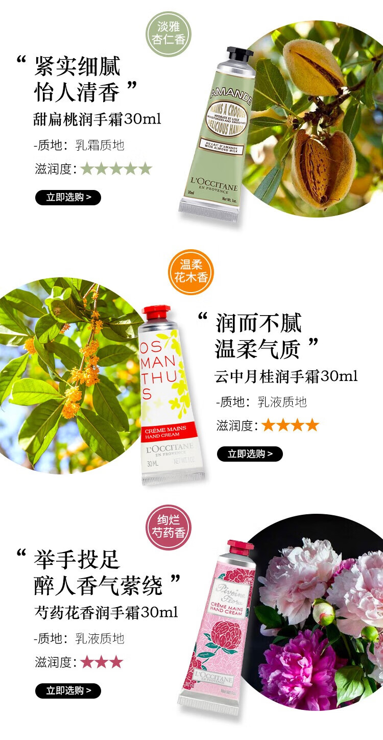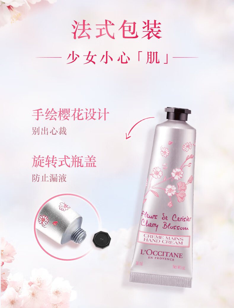 欧舒丹樱花护手霜30ml手膜防干裂滋润温和易吸收便携留香伴手礼送男女友 心选到家