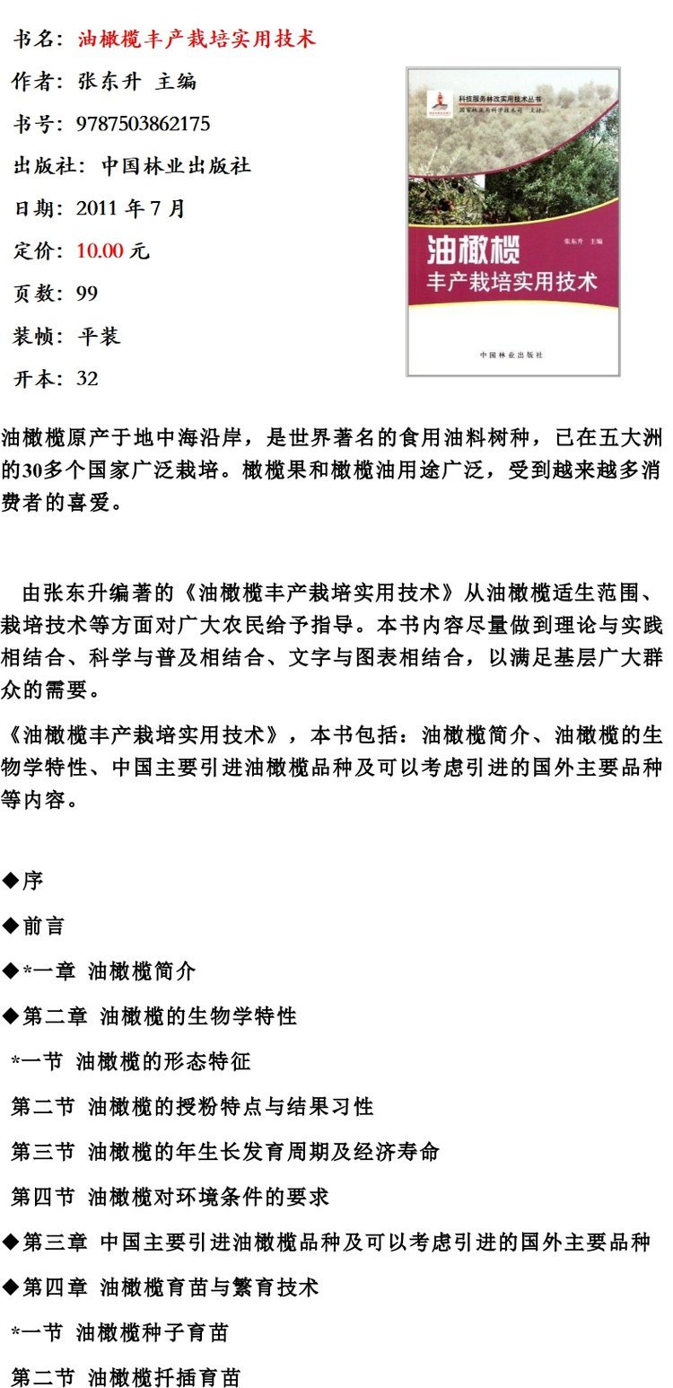 油橄榄丰产栽培实用技术 6217 张东升 科技服务林改实用技术丛书 育苗繁育技术扦插嫁接园地选择规划 整形修剪 病虫害防治中国林业
