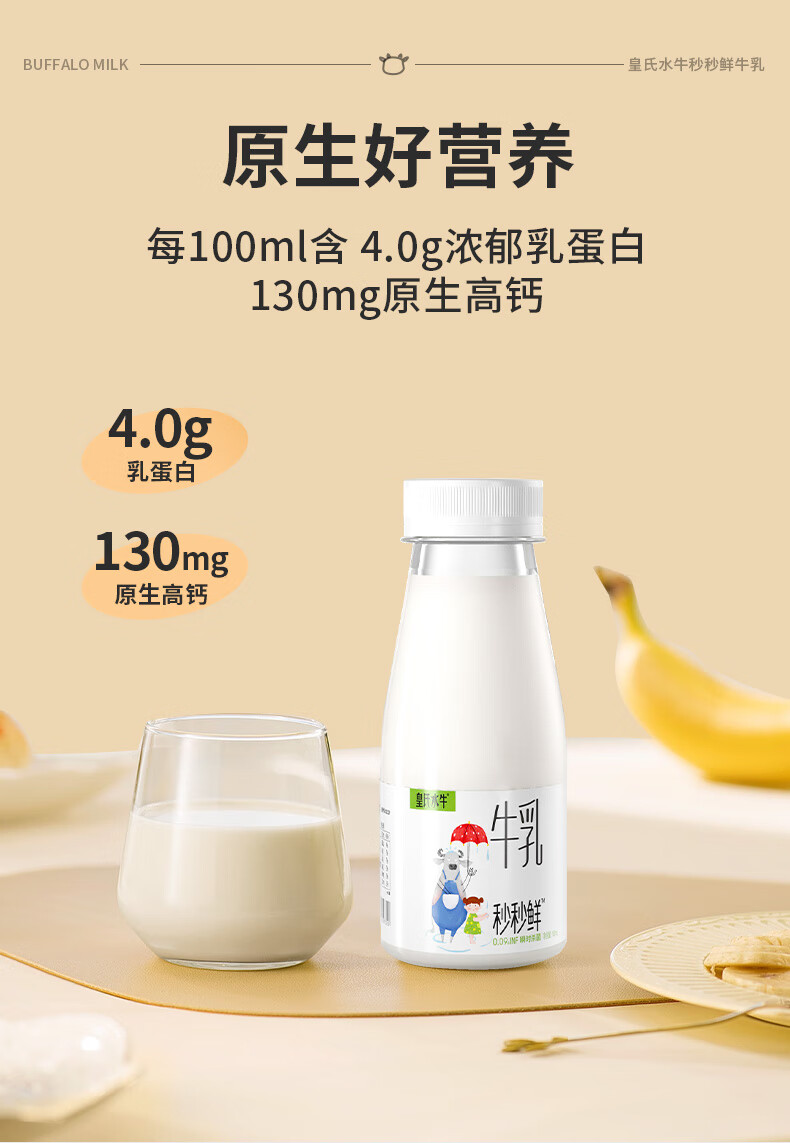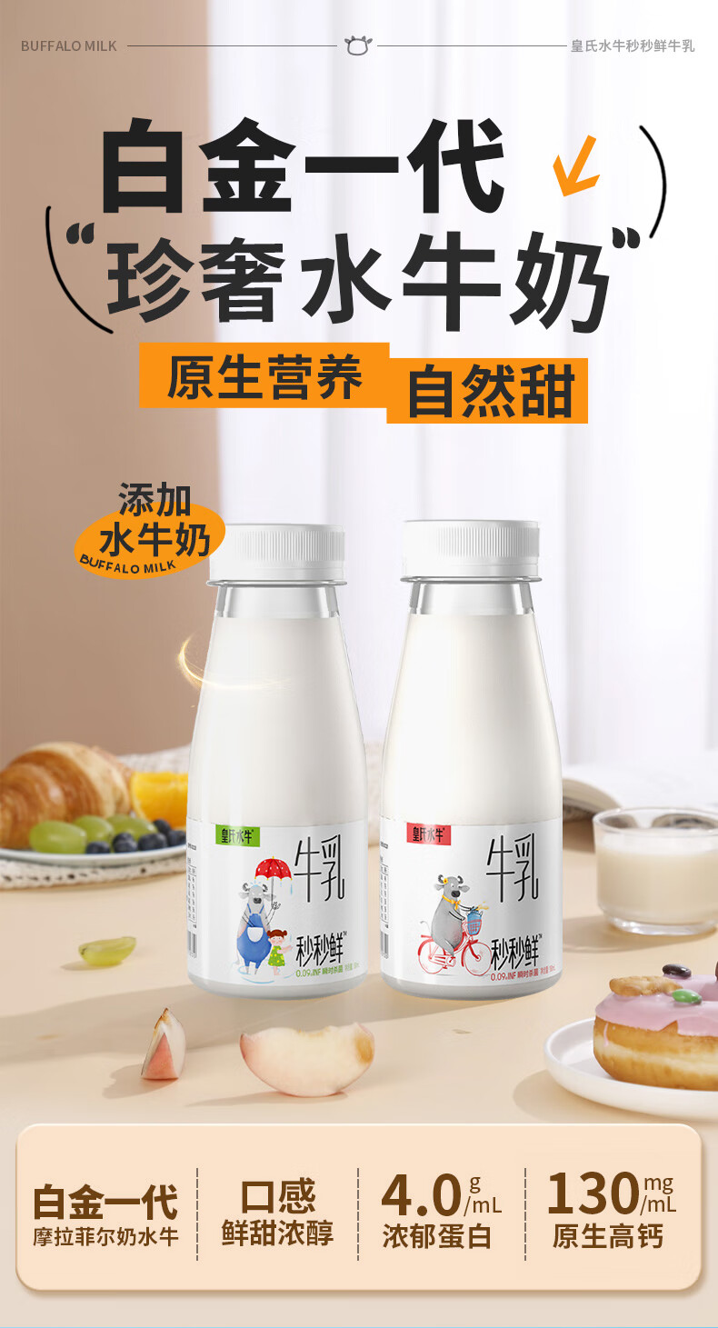 皇氏乳业 水牛秒秒鲜低温牛乳180mL*12瓶