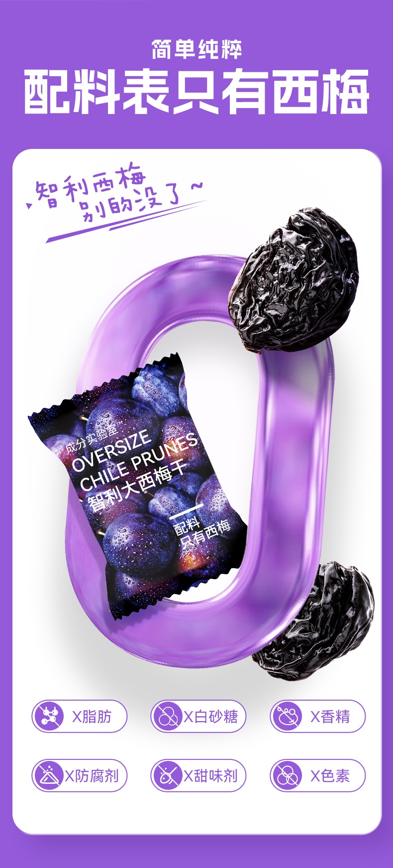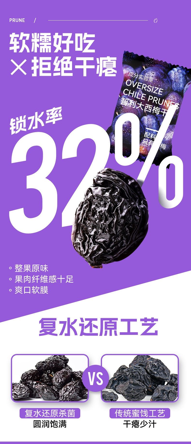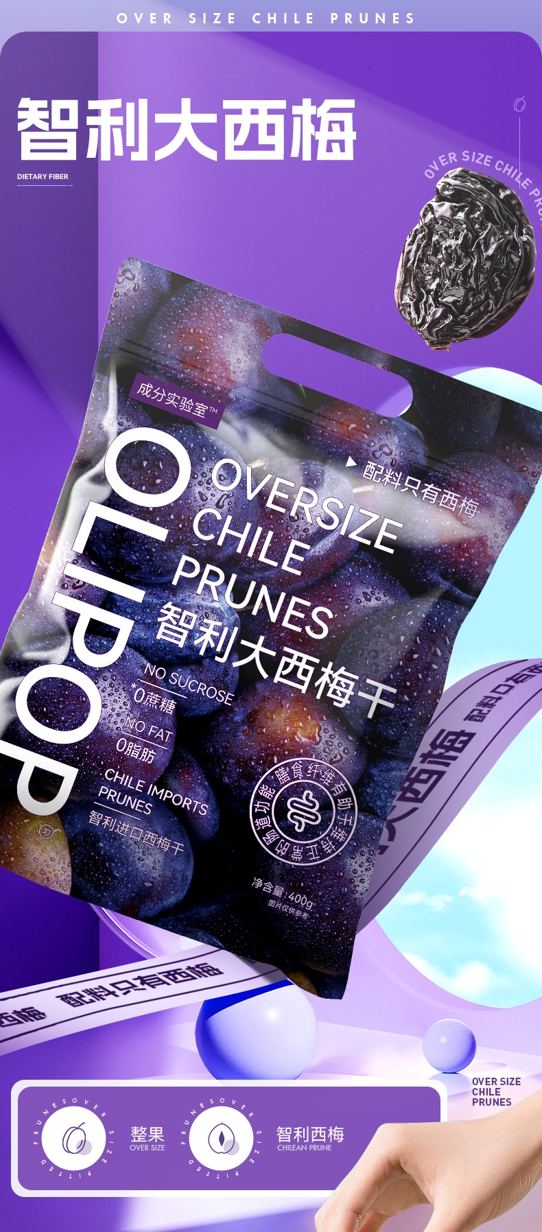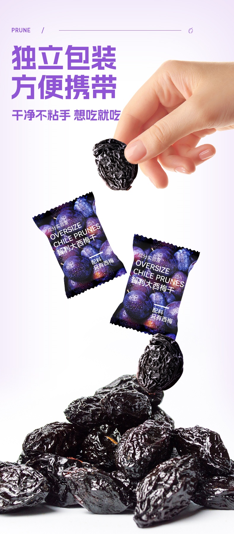 优选丨成分实验室智利进口大西梅干无蔗糖非去核果干果脯零食400g/袋(约50颗每颗独立包装)