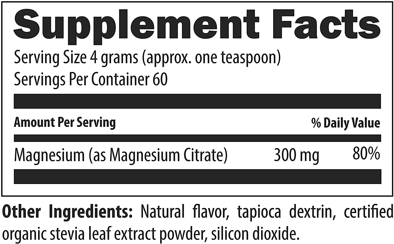 灵活,方便的剂量-无色美味- 这种柠檬味粉末在水中混合均匀,每茶匙含有300毫克柠檬酸镁。 方便的粉末使您可以轻松调整剂量。*