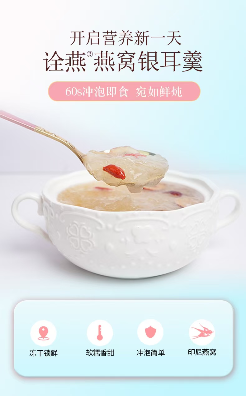 优选丨诠燕燕窝银耳羹 0脂肪即食 进口燕窝有机银耳 免蒸煮 自然屋系列燕窝银耳羹