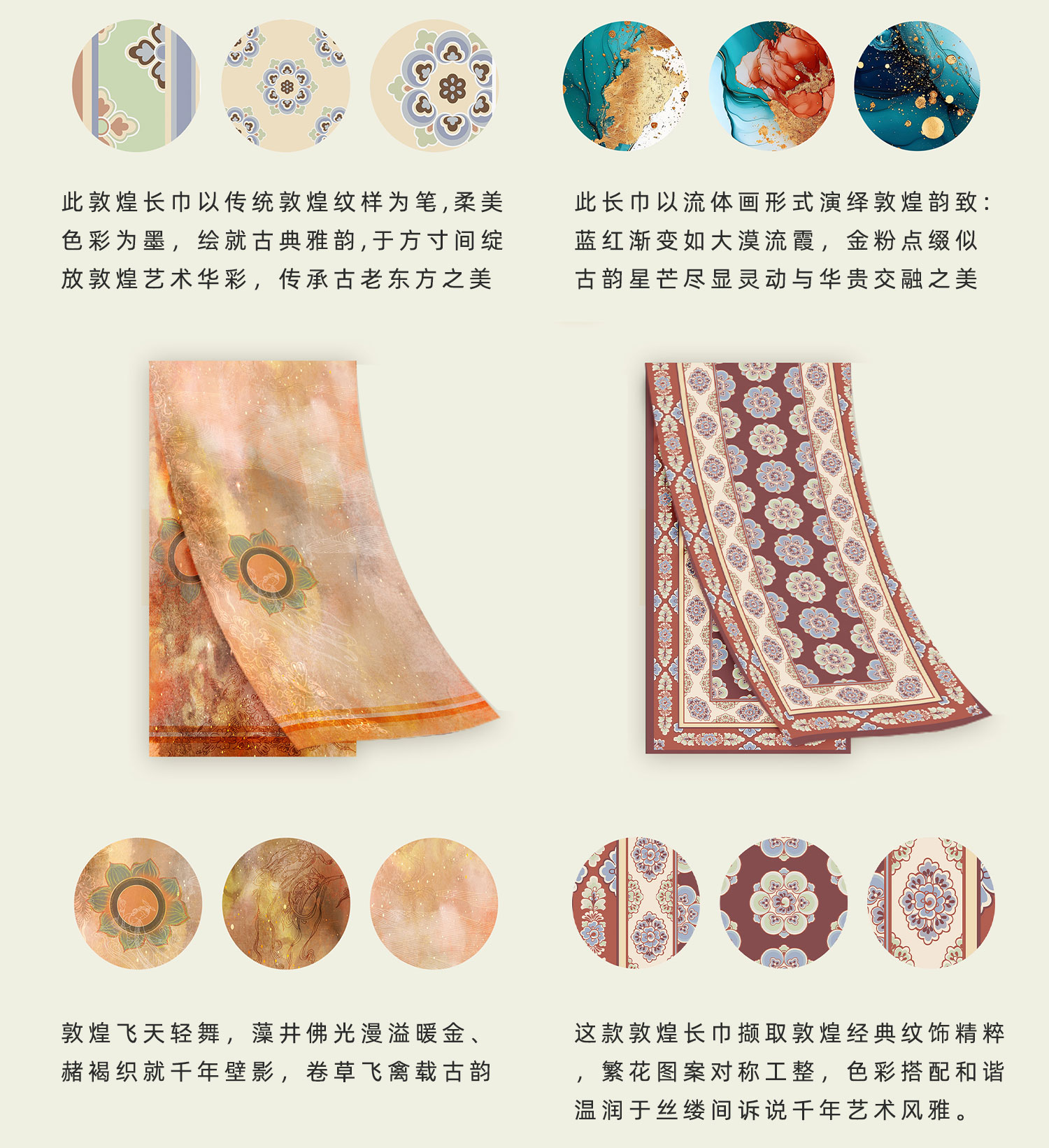 敦煌研究院 【敦煌定制丝巾】 敦煌壁画丝巾围巾真丝长条丝巾披肩百搭