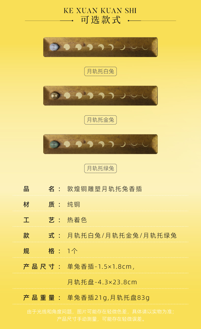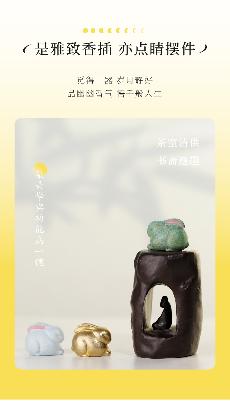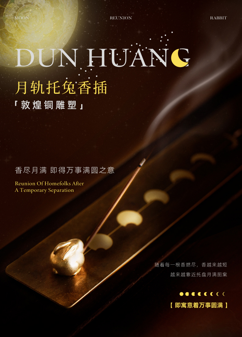 敦煌研究院【 月轨托兔香插 】敦煌铜雕塑线香香插托盘香托家用室内