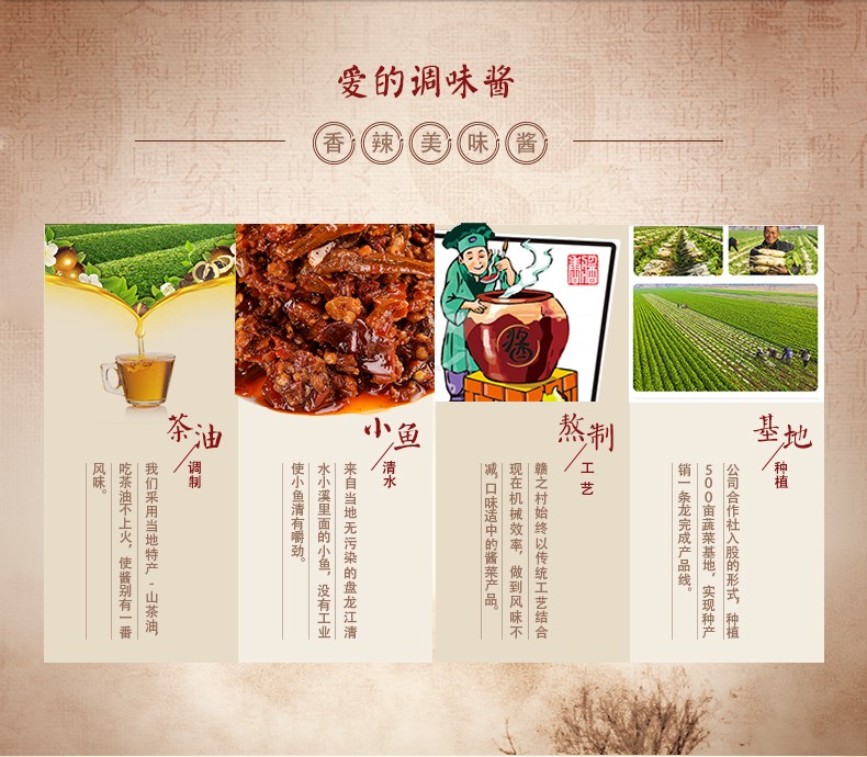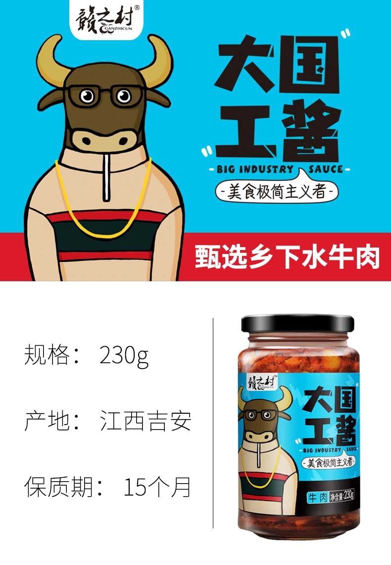 赣之村大国工酱牛酱牛肉酱鱼仔酱汤锅调味料 煮菜\/煮鱼\/烧汤\/清汤\/红汤火锅底料辣椒酱下饭拌面 大国工酱礼盒230gx4瓶