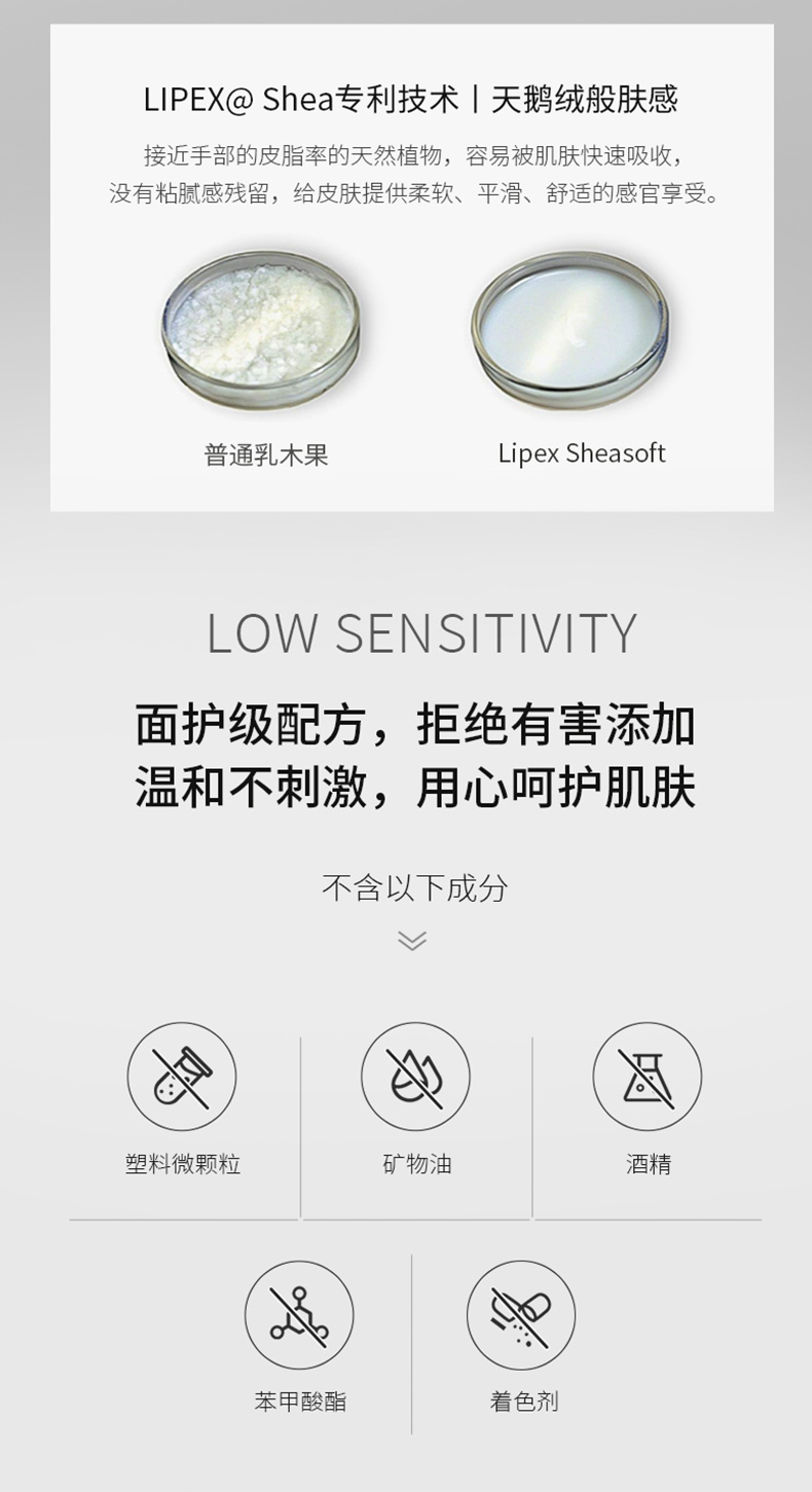 润肤的同时不拔干、不粘腻