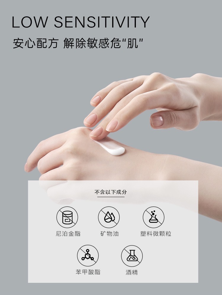 ❌不含尼泊金酯、酒精、矿物油脂、色素