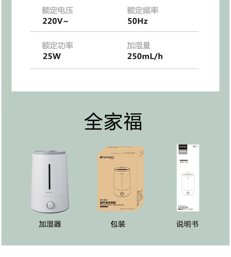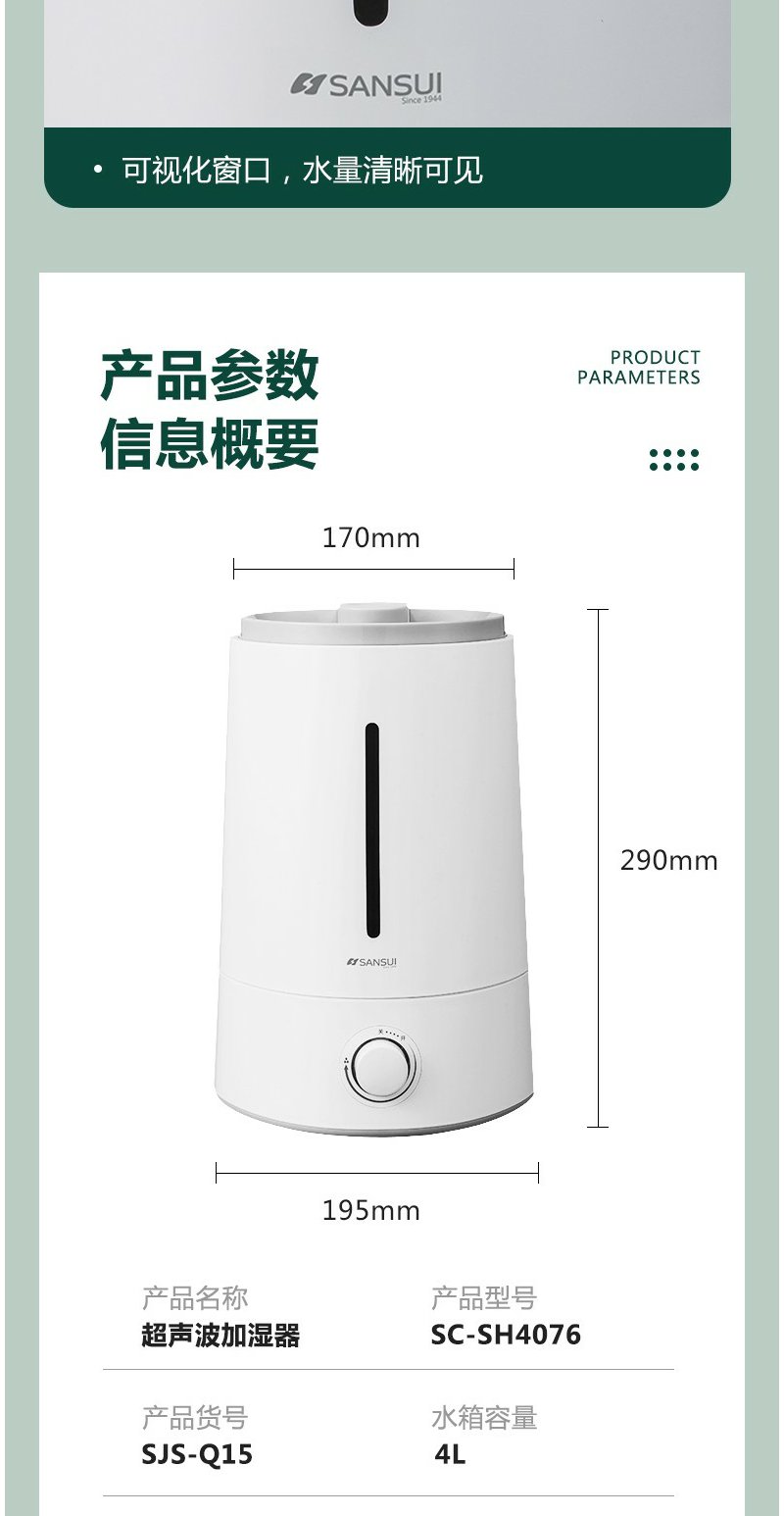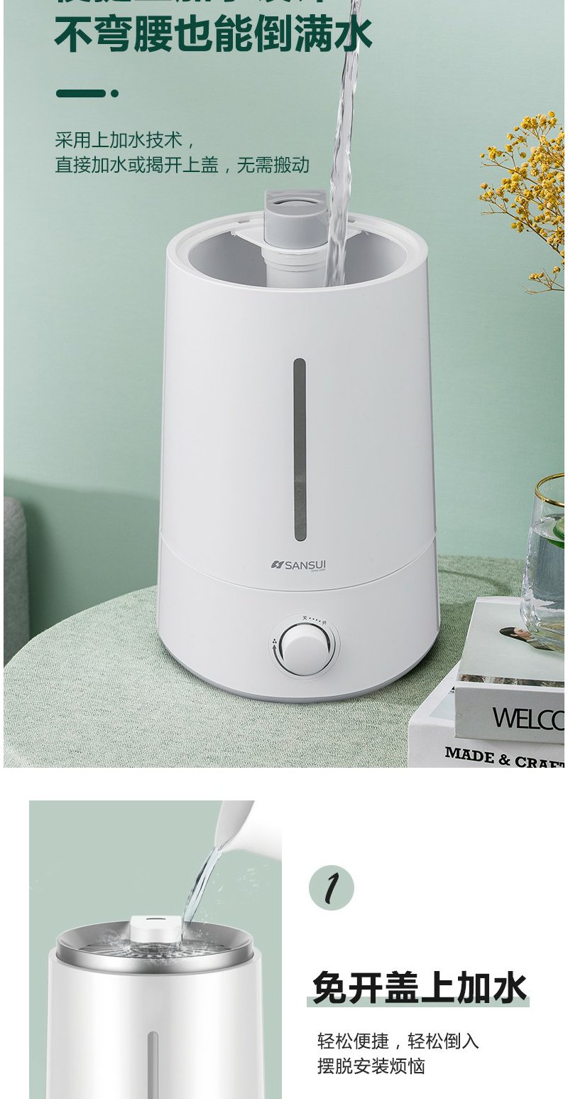 山水(SANSUI)上加水带过滤加湿器 SJS-Q15 白色