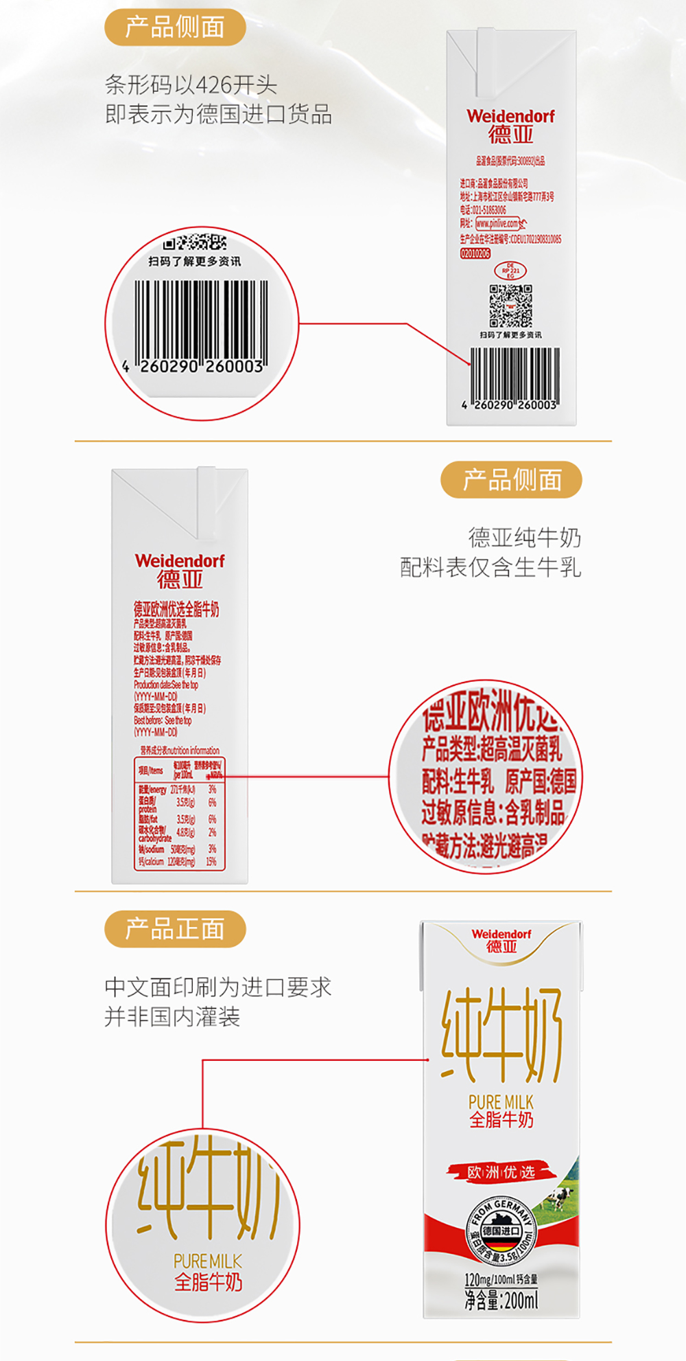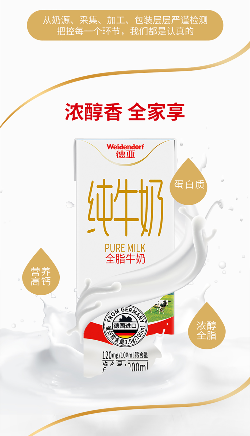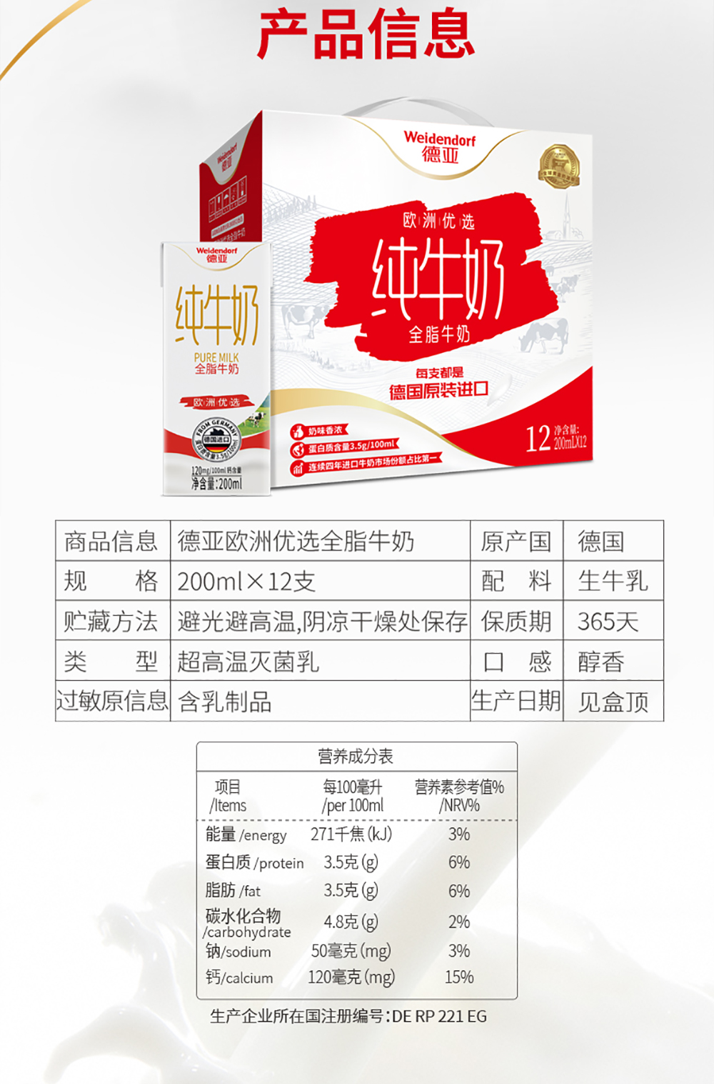 德亚 欧洲优选全脂牛奶礼盒 200ml*12