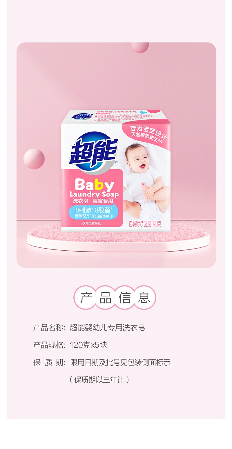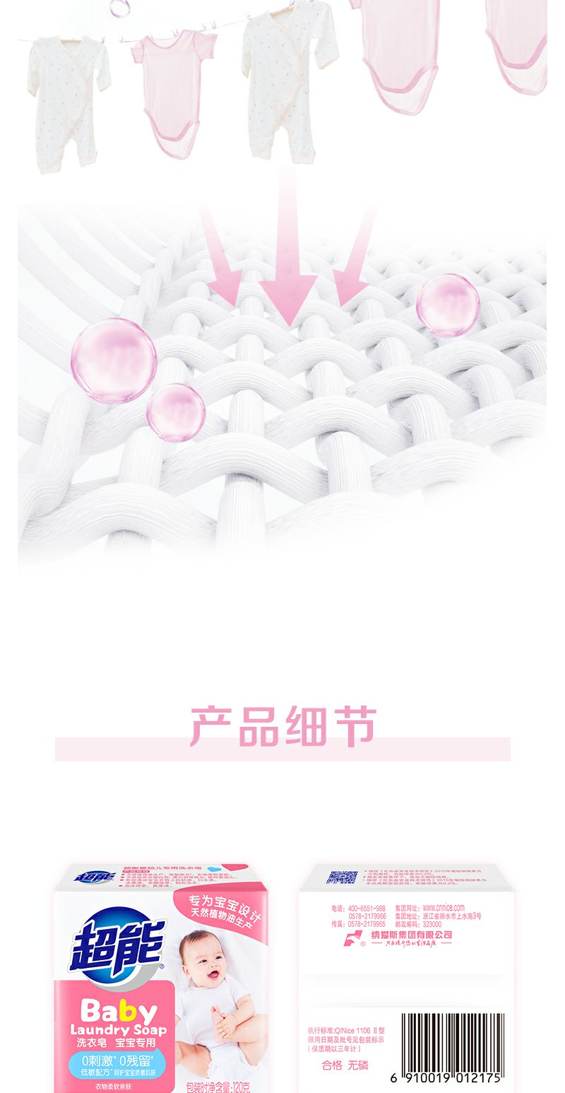超能 婴幼儿宝宝专用洗衣皂 无刺激不添加荧光增白剂 120g/袋
