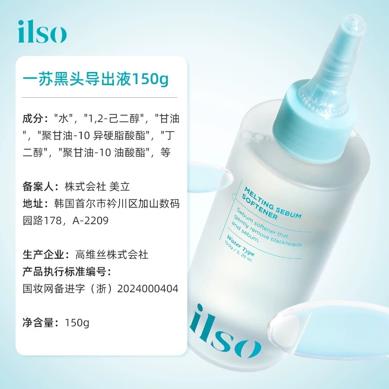 ilso一苏黑头导出精华液套装(黑头导出精华液150ml+黑头铲+湿敷棉50枚)