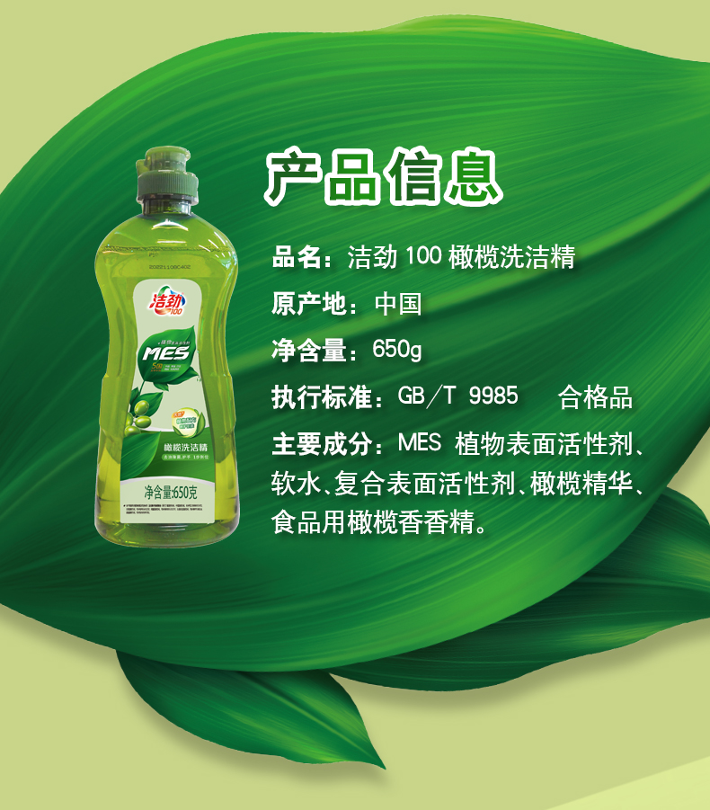 洁劲100橄榄洗洁精650G*1瓶