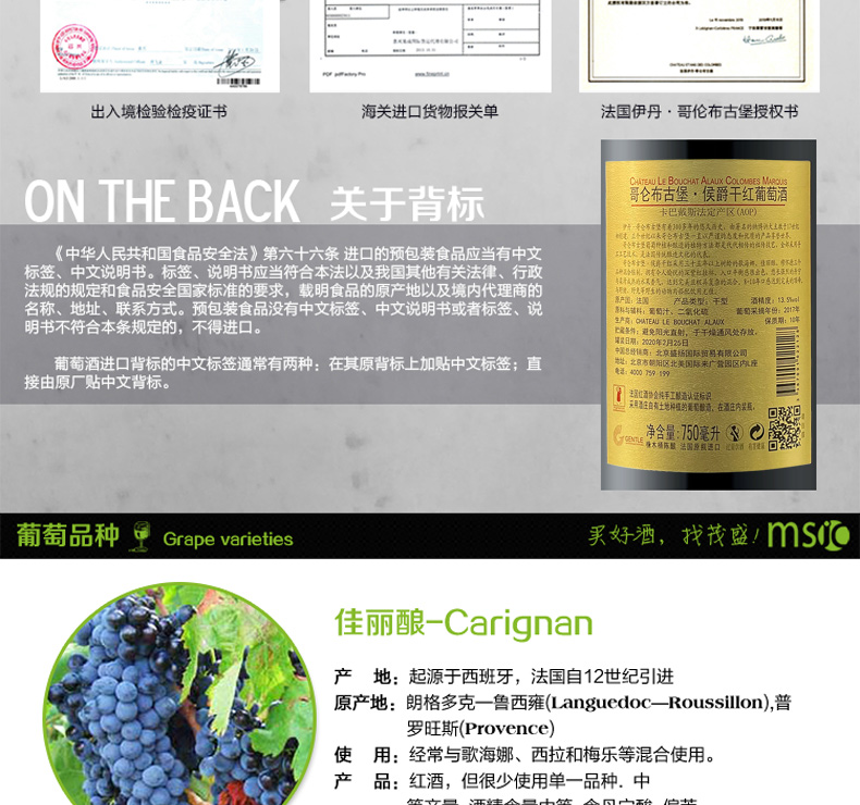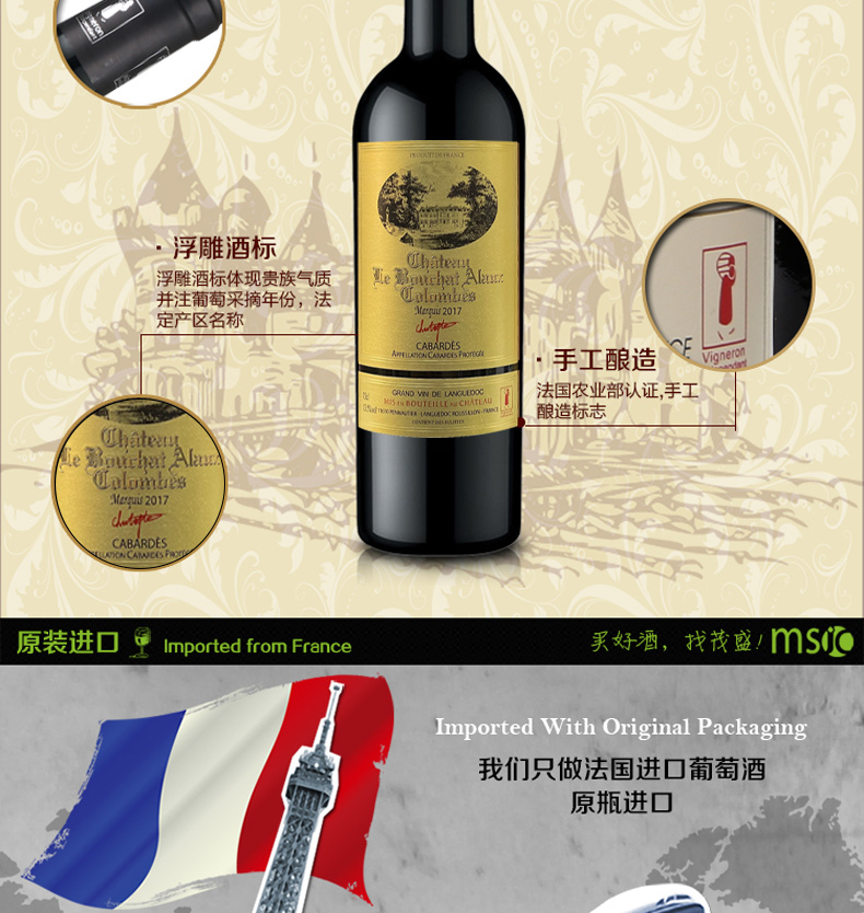 【秒杀】哥仑布古堡 干红葡萄酒 侯爵 750ml*6瓶 整箱