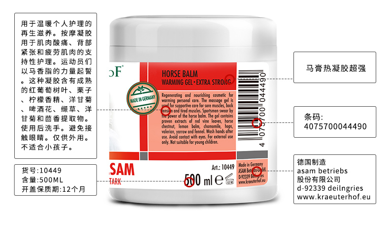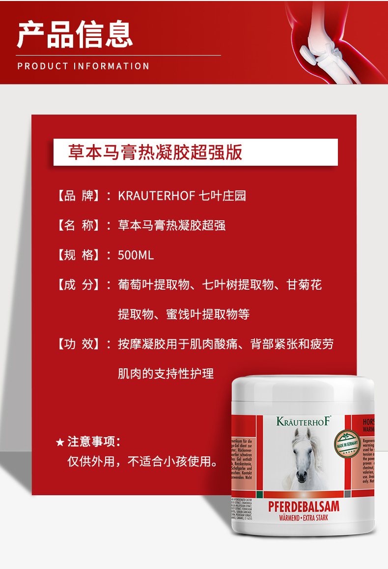 【保税仓】Kräuterhof温热马膏凝胶 500ml
