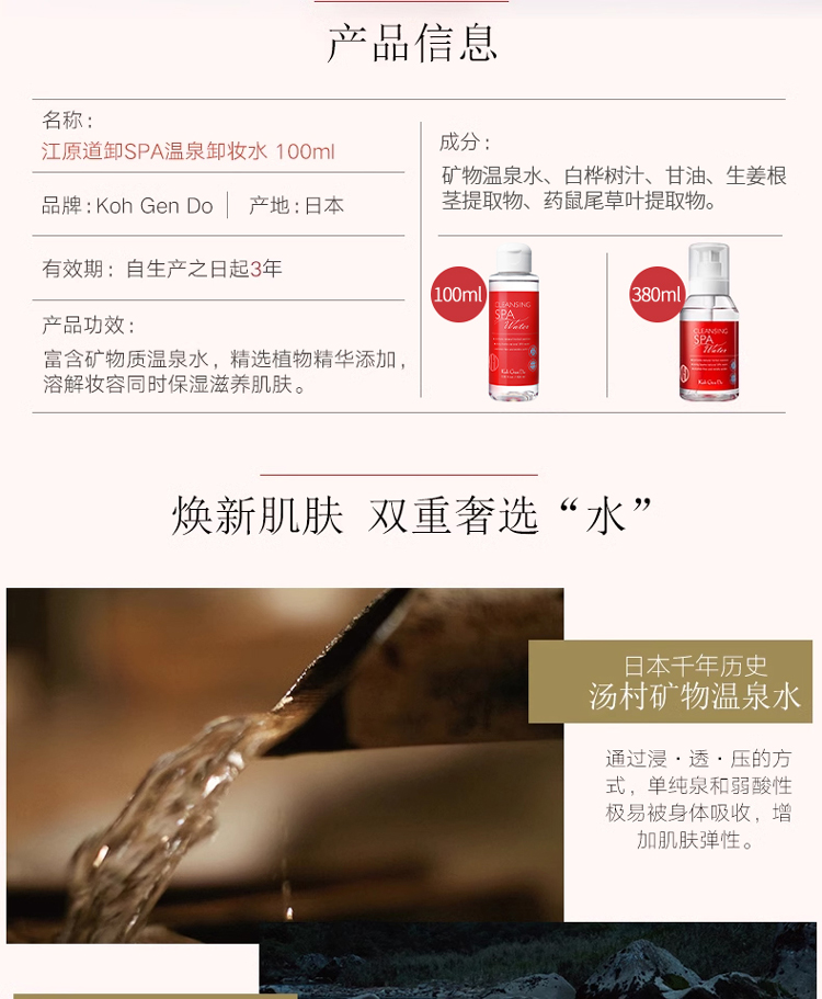 KohGenDo 江原道 SPA温泉矿物卸妆水 100ml【2026.6】