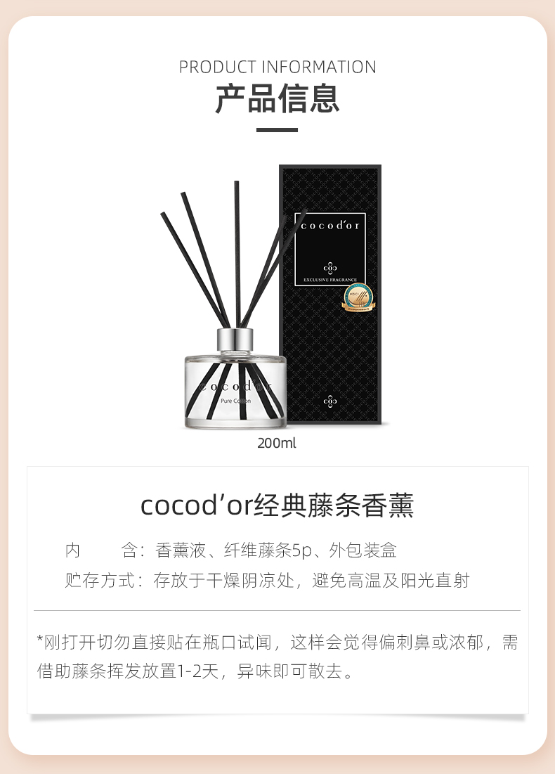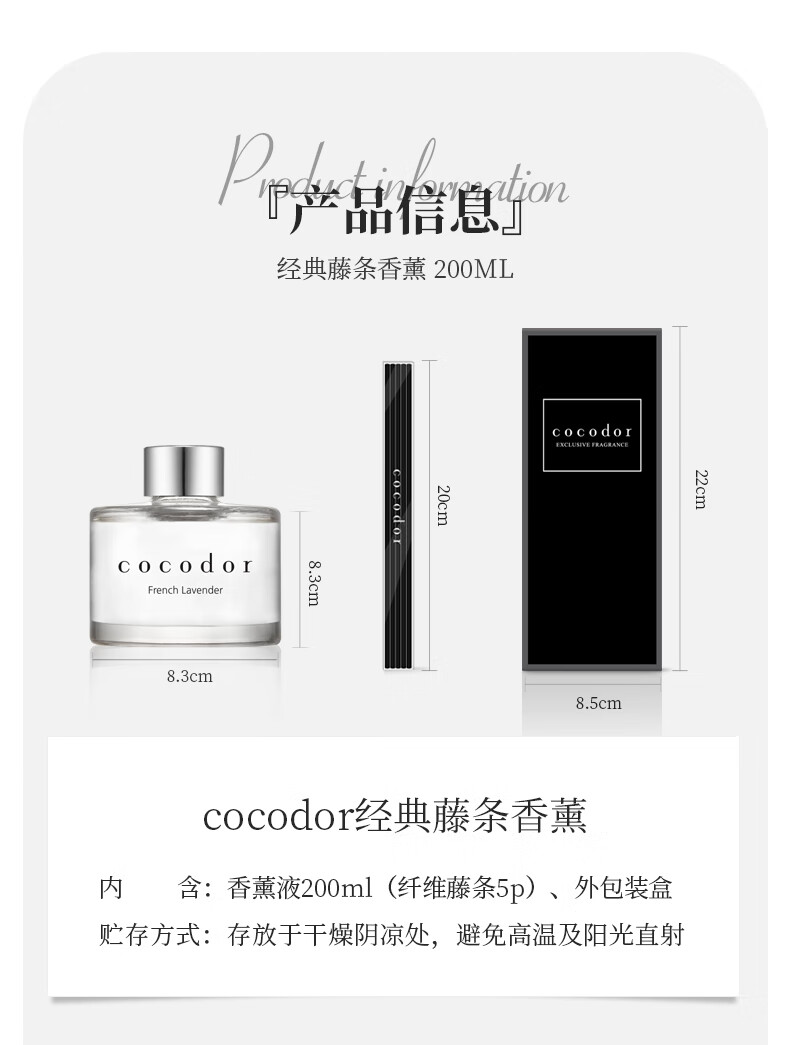 COCODOR 经典无火藤条香薰200ml 白茉莉/黑樱桃/薰衣草/小苍兰