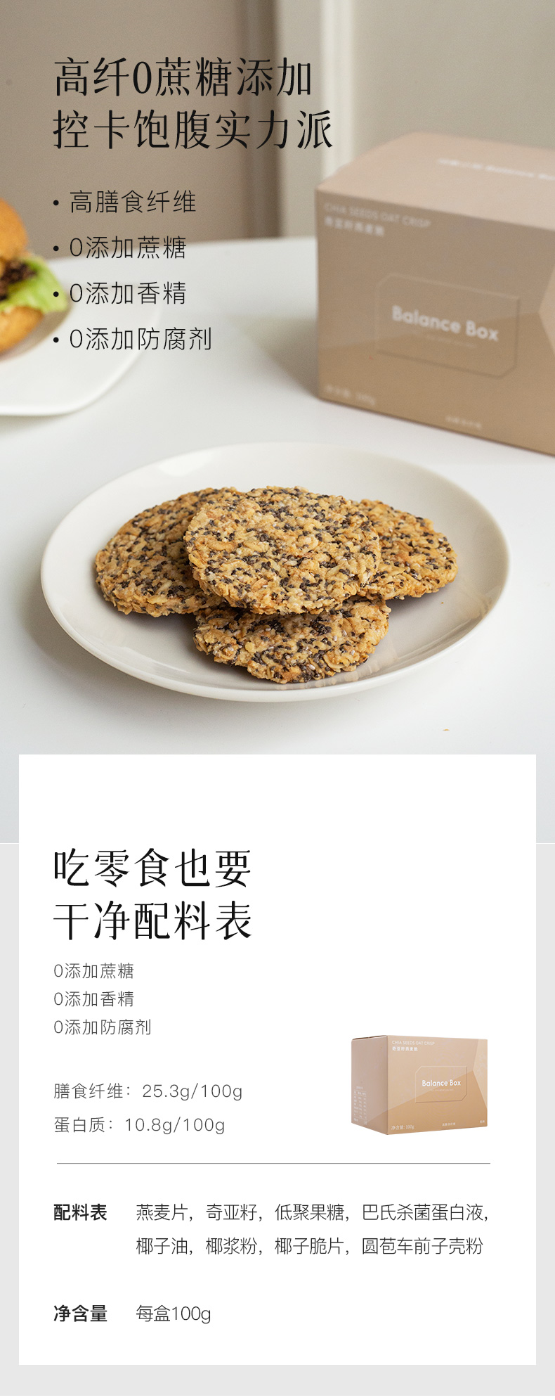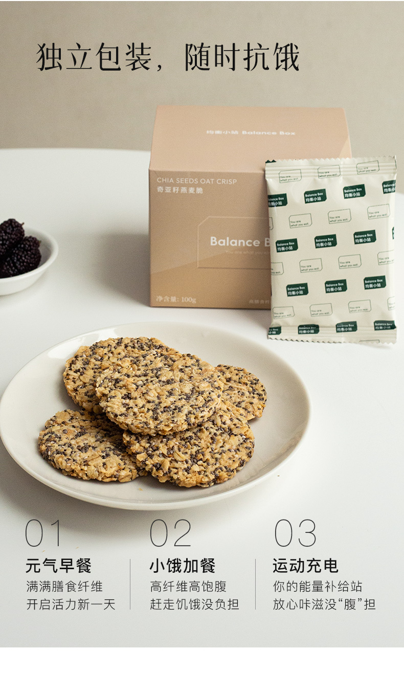 【独立包装】均衡小站 奇亚籽燕麦脆 100g/盒 多种膳食纤维