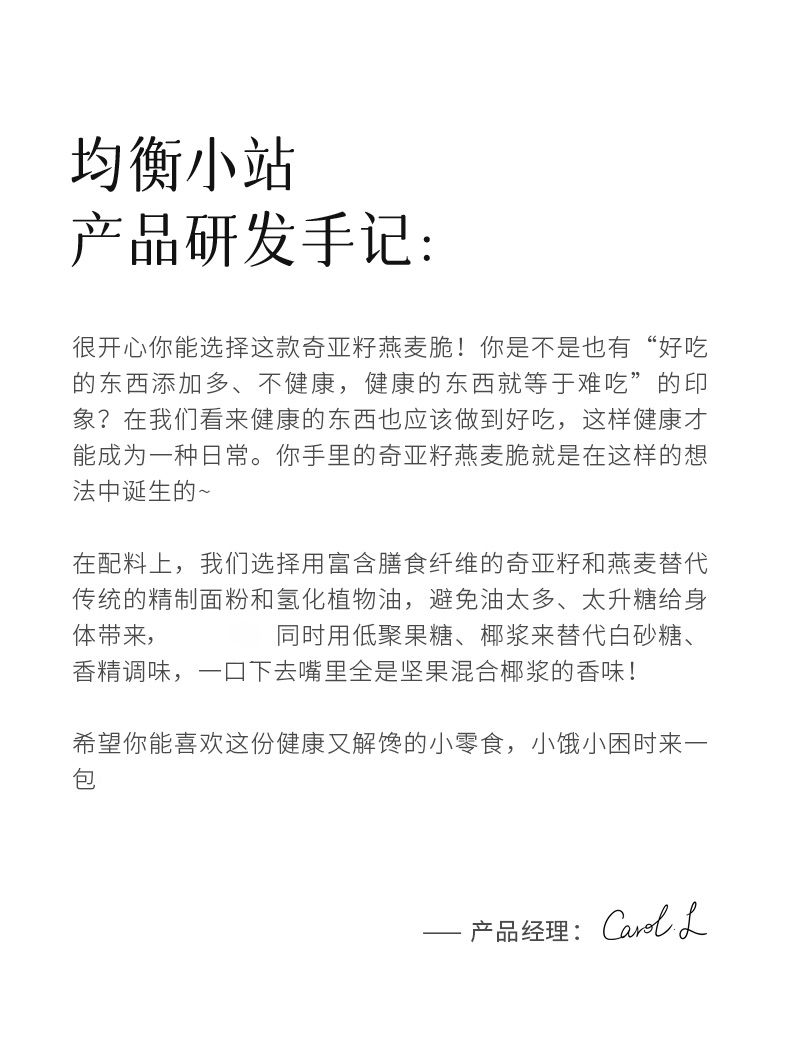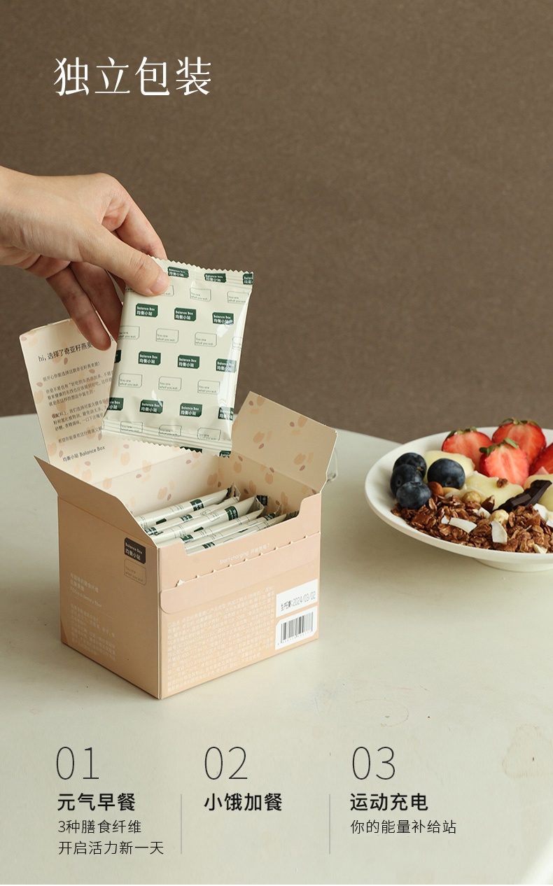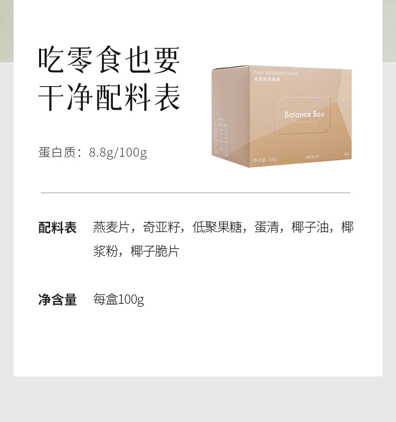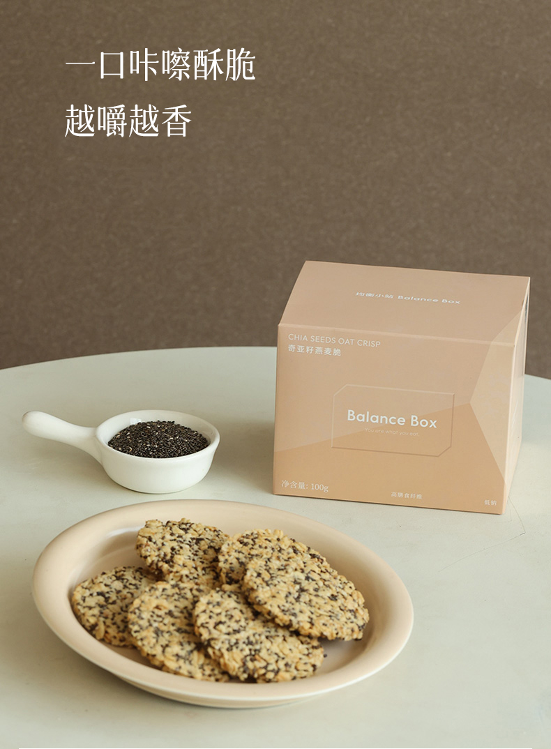 均衡小站 奇亚籽燕麦脆100g/盒 高膳食纤维零食品独立袋装