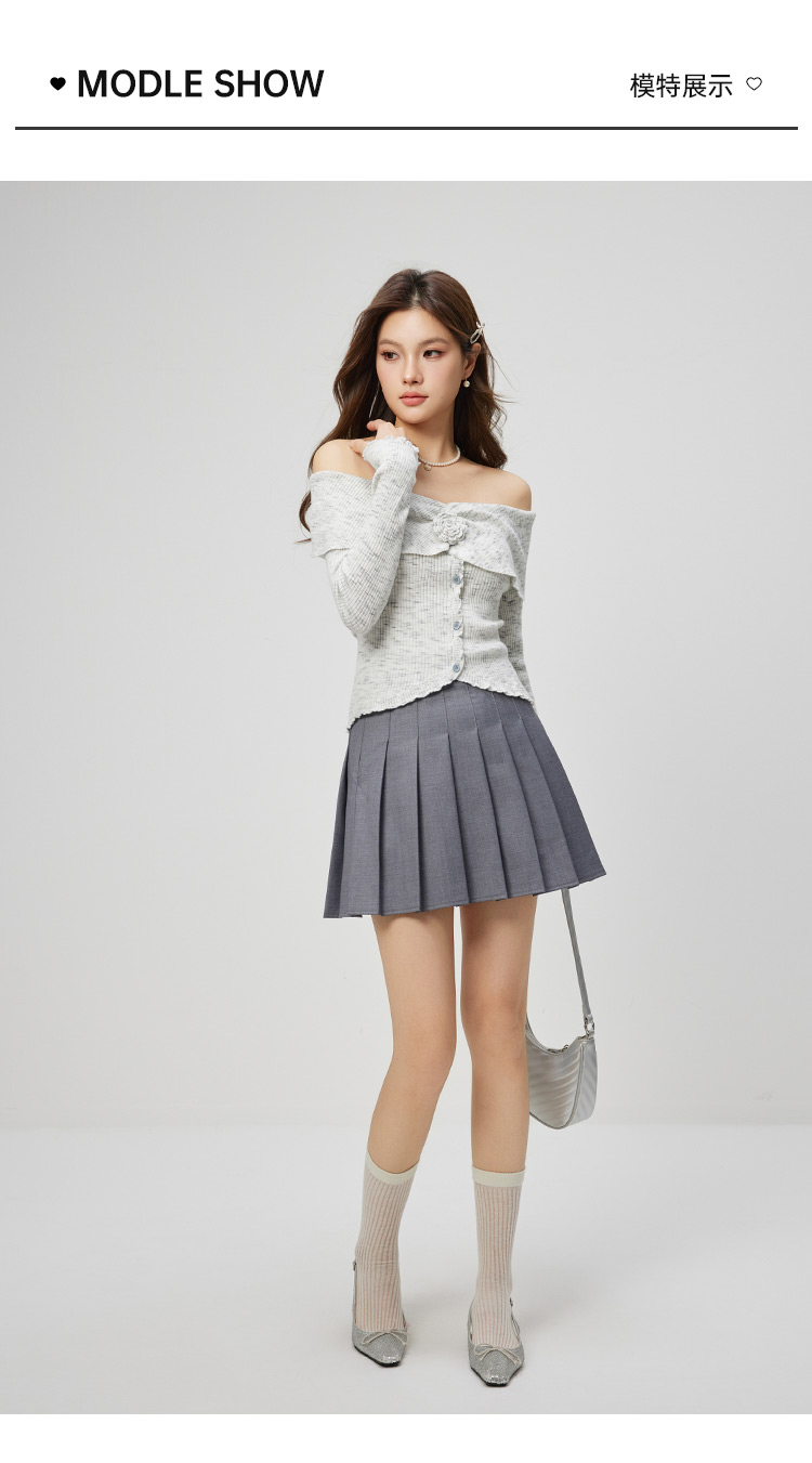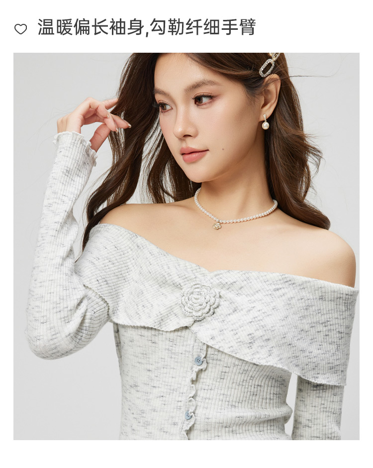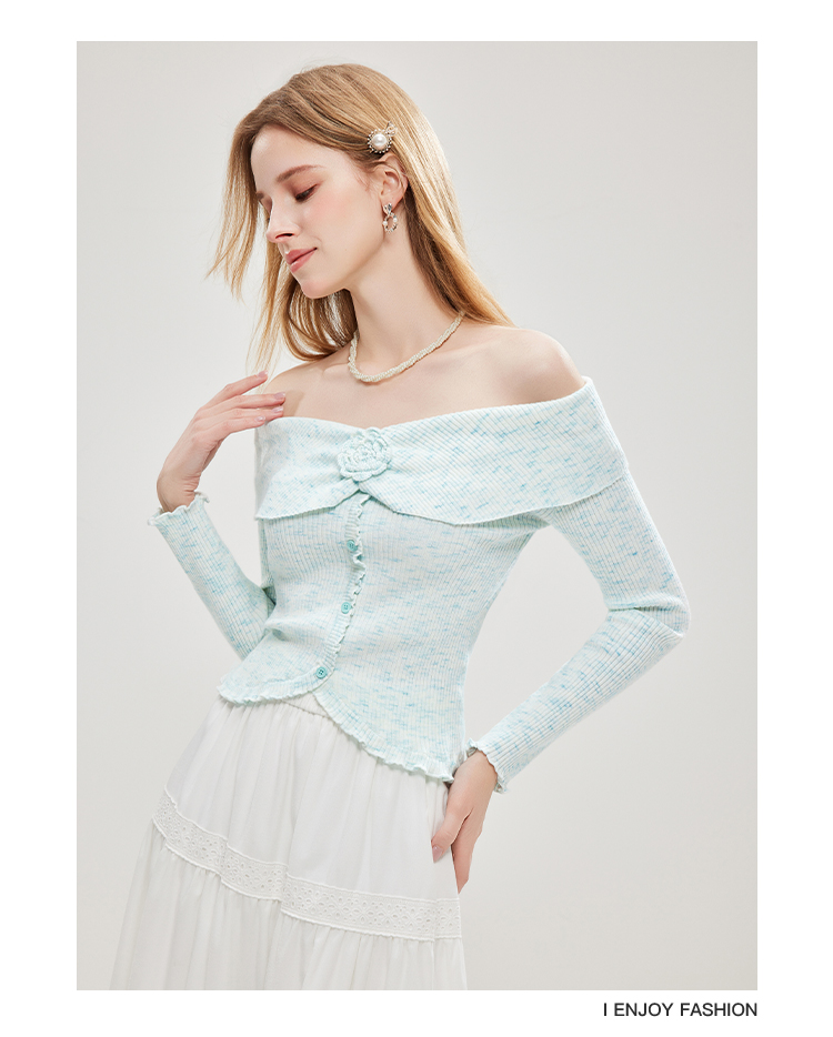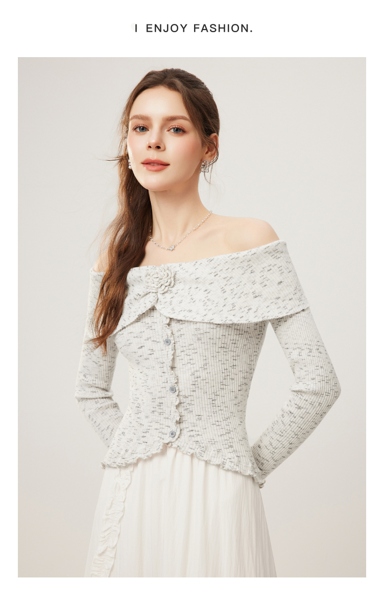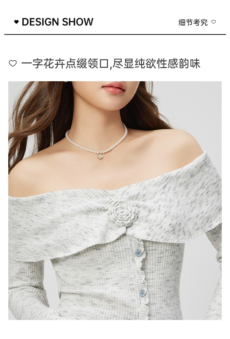 IEF/爱依服2025 春季 时尚性感辣妹风一字领百搭高级感毛织上衣B38903