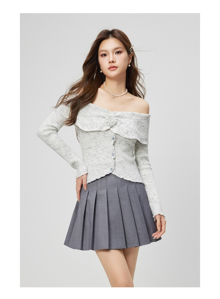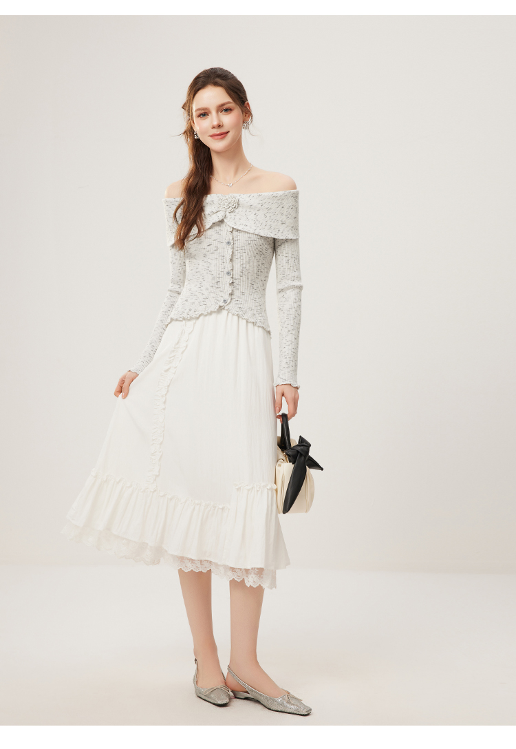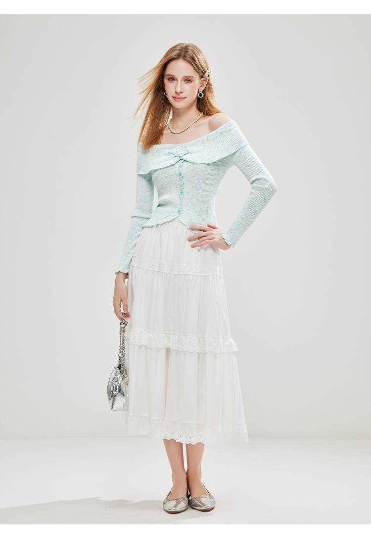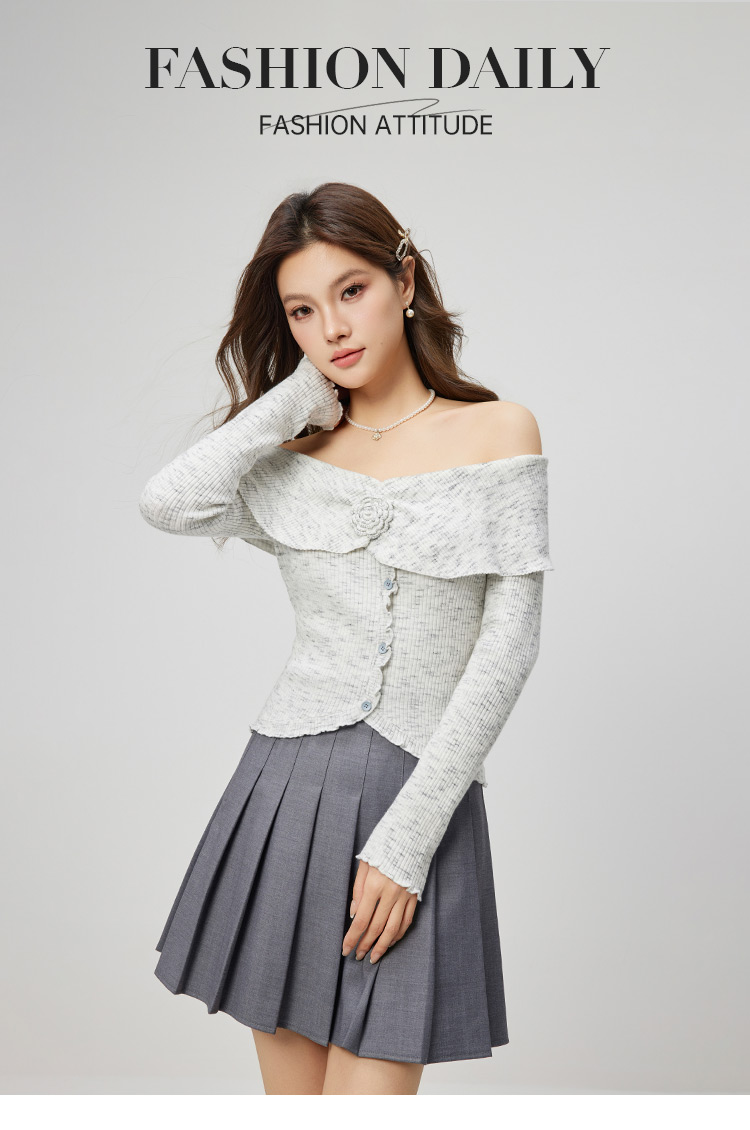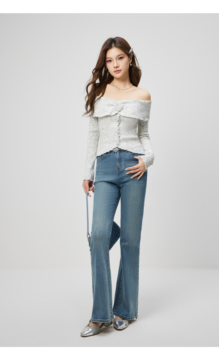 IEF/爱依服2025 春季 时尚性感辣妹风一字领百搭高级感毛织上衣B38903
